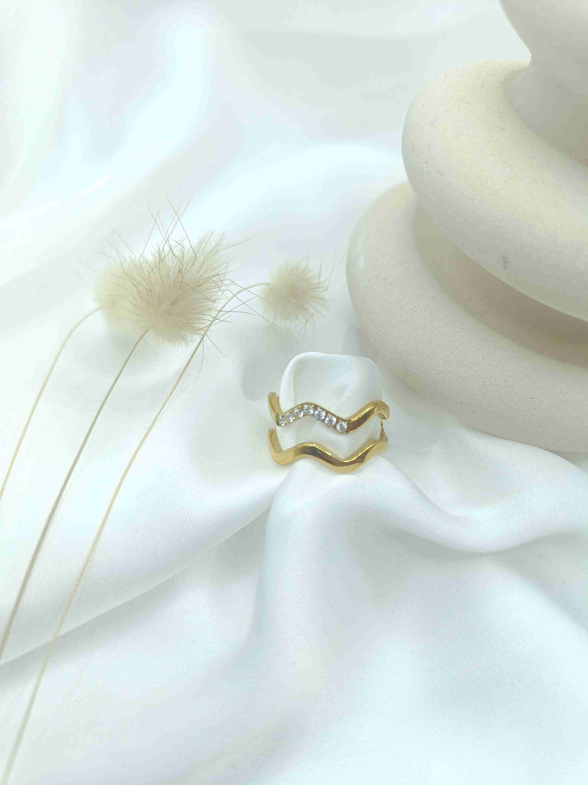 Το Absynthe Gold ξεχωρίζει με τις δύο του ζιγκ-ζαγκ γραμμές που δημιουργούν ένα δυναμικό, σχεδόν ρυθμικό μοτίβο πάνω στο χέρι. Στο κέντρο της μιας γραμμής, επτά λευκά ζιργκόν προσθέτουν λάμψη και κομψότητα — σαν μια σειρά από στιγμές που φωτίζουν τη διαδρομή.