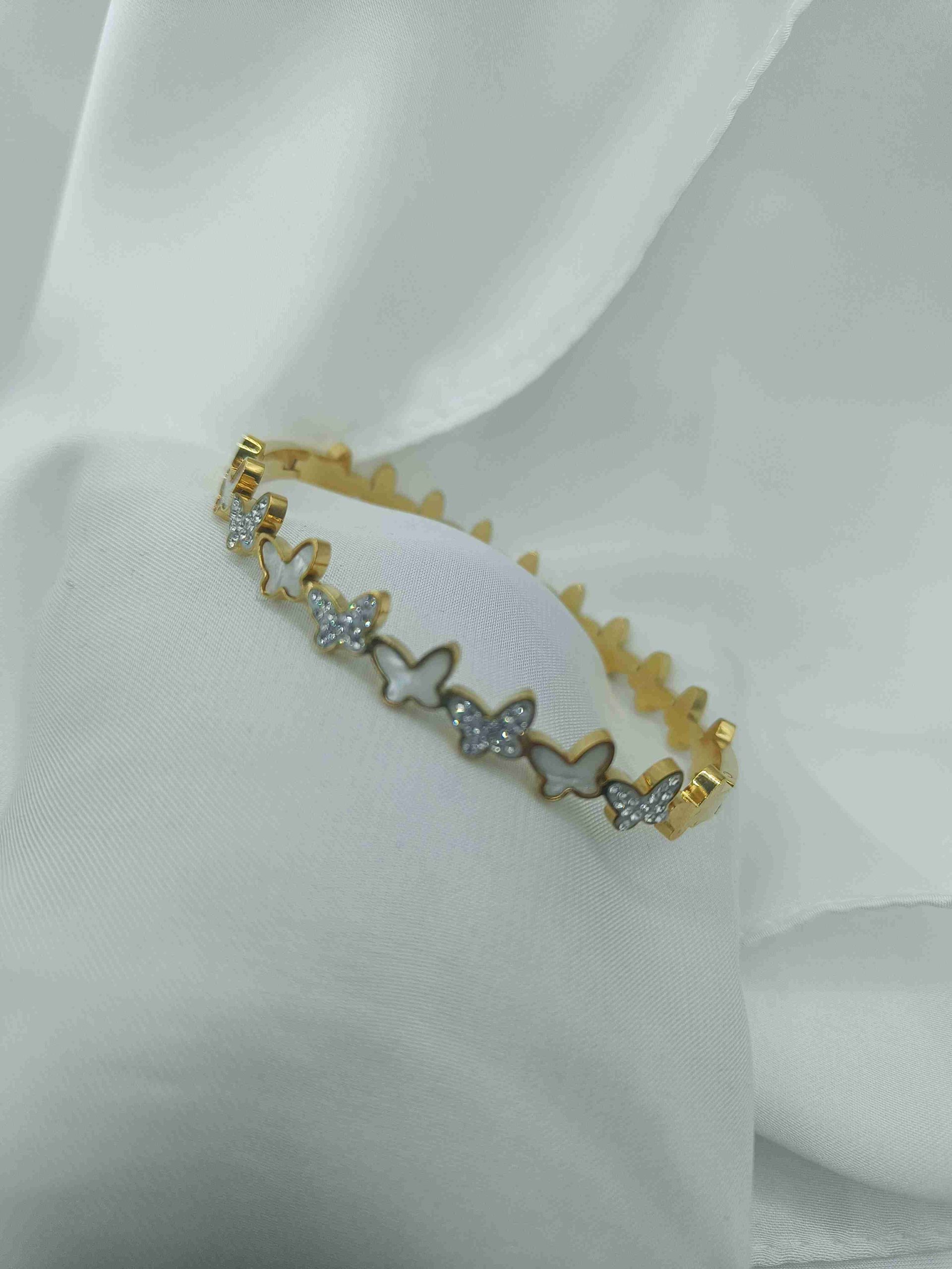 Ένα αέρινο ατσάλινο βραχιόλι, διακοσμημένο με μικρές πεταλούδες που συμβολίζουν την ελευθερία και τη φρεσκάδα της αυγής. Στο μπροστινό μέρος, οι πεταλούδες λάμπουν με στρας και φίλντισι, ενώ στο πίσω μέρος συνεχίζουν σε μια πιο διακριτική, minimal εκδοχή. Κομψό και ρομαντικό, το Alba είναι η τέλεια επιλογή για μια ανάλαφρη, elegant πινελιά στην εμφάνισή σου.