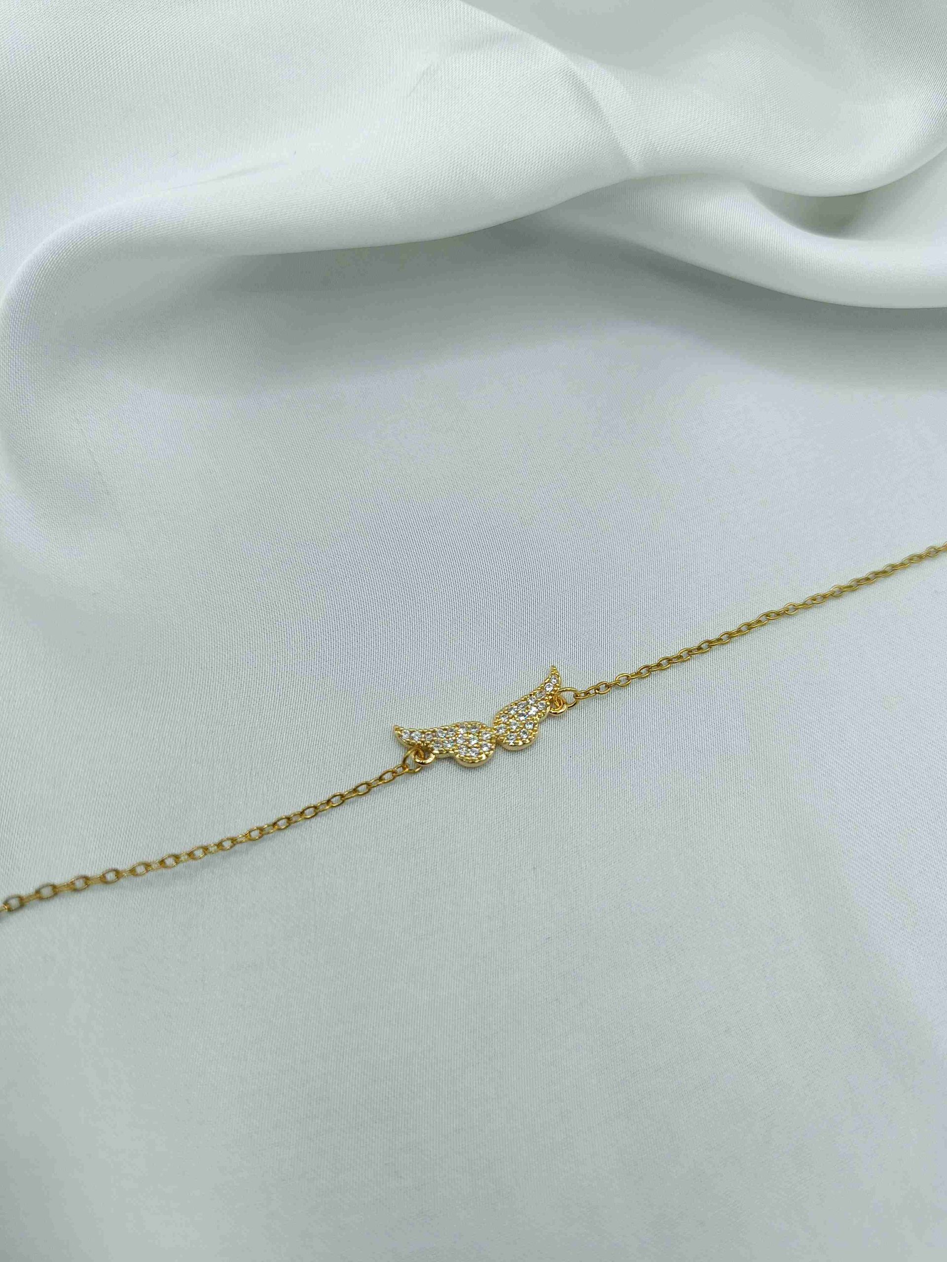 Το Angelique είναι ένα κομψό βραχιόλι με κεντρικό στοιχείο διακριτικά φτερά, στολισμένα με λαμπερά λευκά ζιργκόν που χαρίζουν μια απαλή και εκλεπτυσμένη λάμψη. Το σχέδιο αποπνέει κομψότητα και μια αίσθηση προστασίας και ελευθερίας, δημιουργώντας ένα κόσμημα που συμπληρώνει ιδανικά κάθε εμφάνιση.