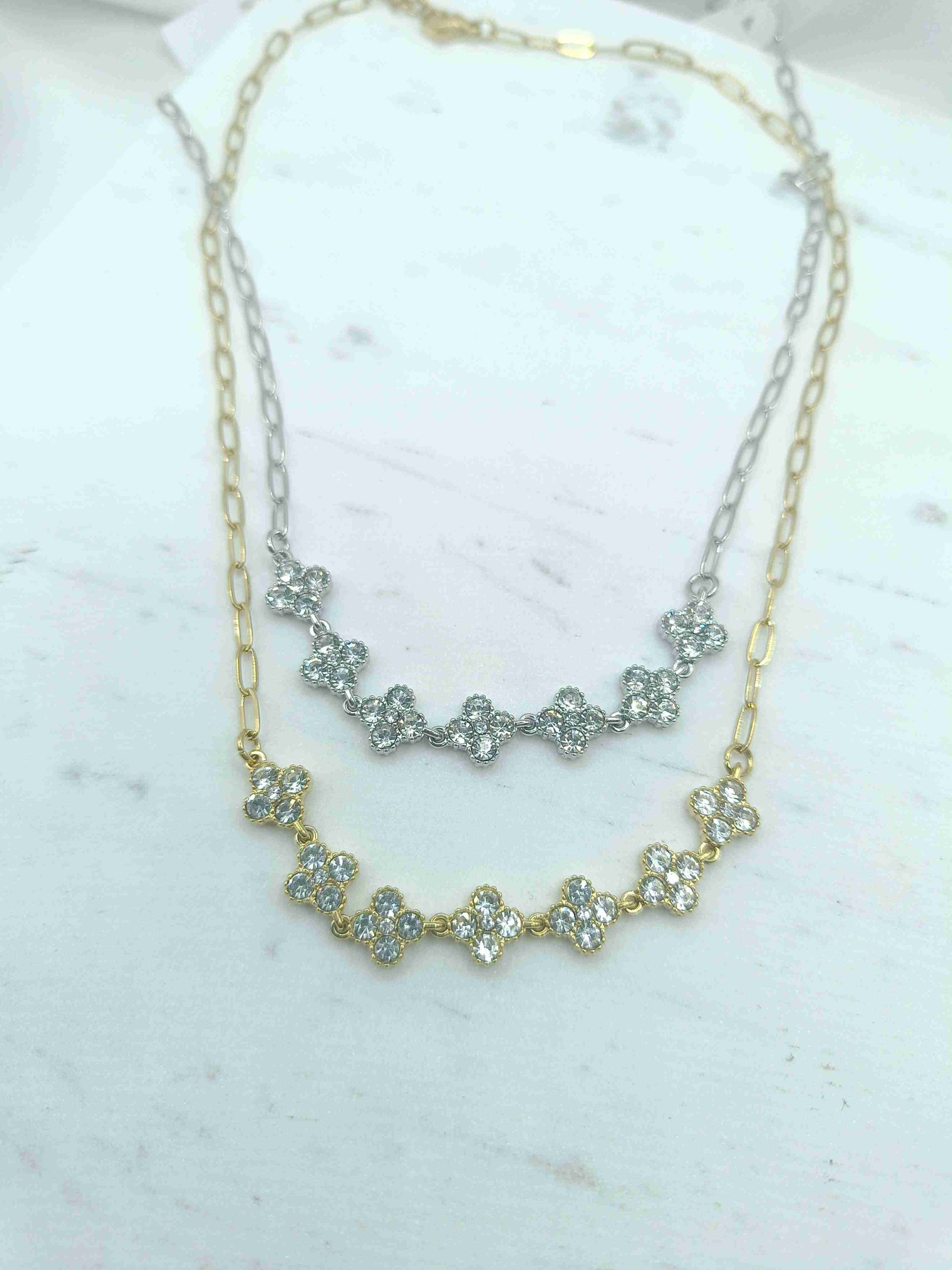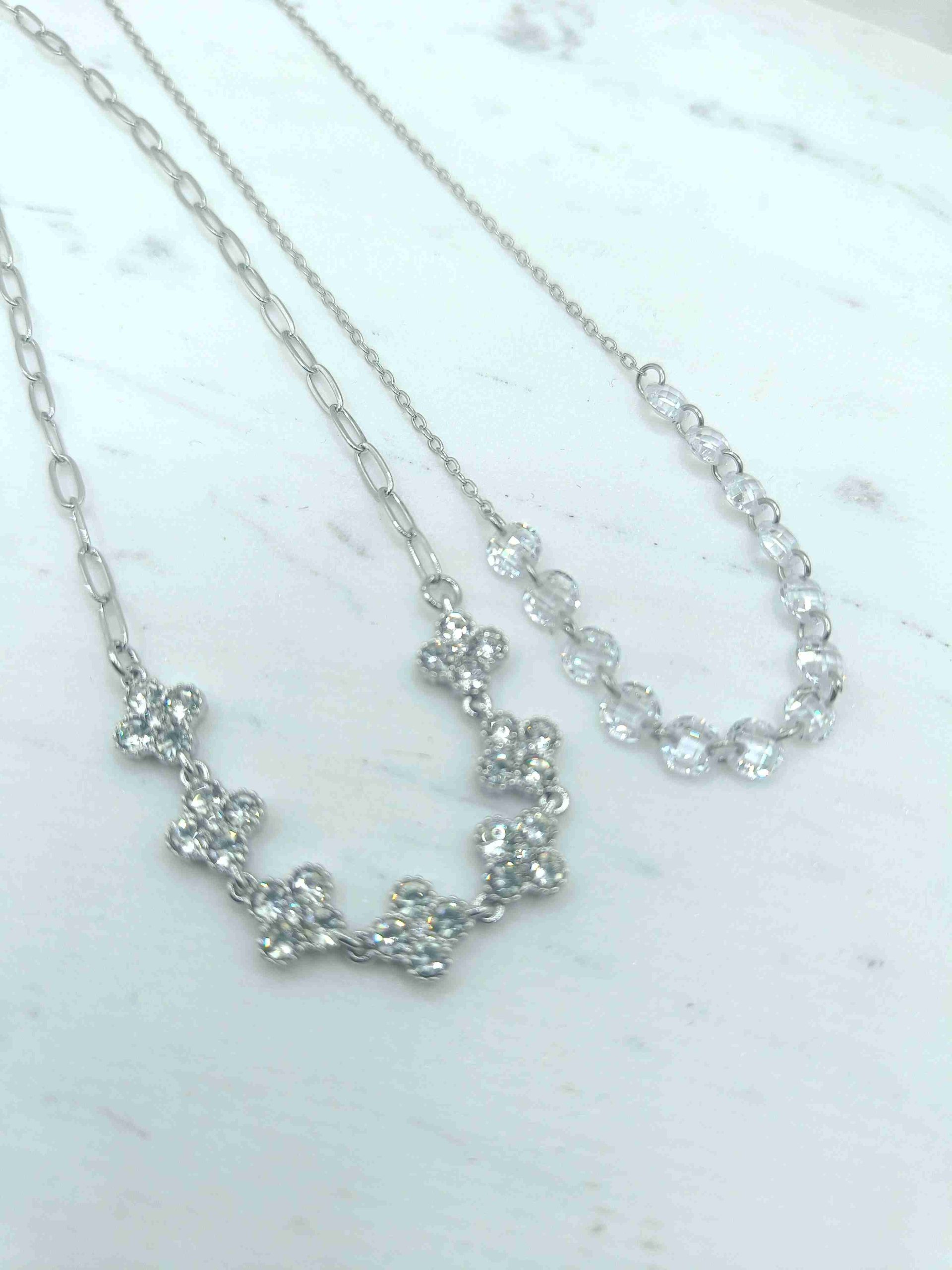 Το Arlina είναι ένα λαμπερό, εκλεπτυσμένο κολιέ που ξεχωρίζει για την εντυπωσιακή αλυσίδα του και τα επτά φωτεινά μοτίβα στο κέντρο, διακοσμημένα με λευκά ζιργκόν. Η ισορροπία ανάμεσα στη λεπτότητα και τη λάμψη δημιουργεί ένα κομμάτι που κινείται αρμονικά με το φως, χαρίζοντας κομψότητα σε κάθε εμφάνιση.