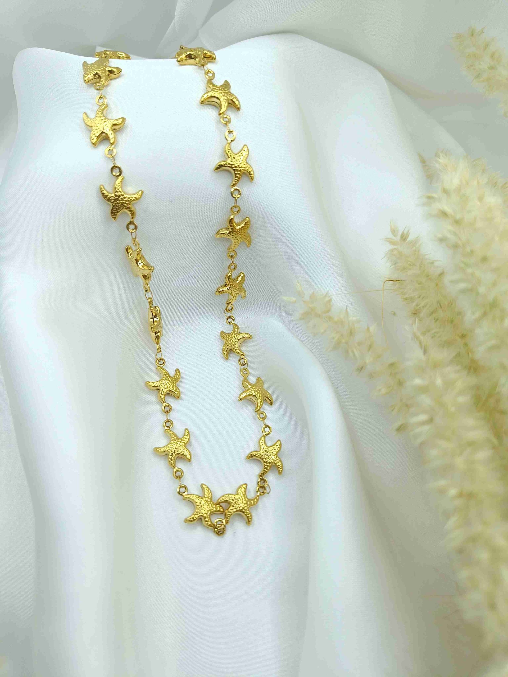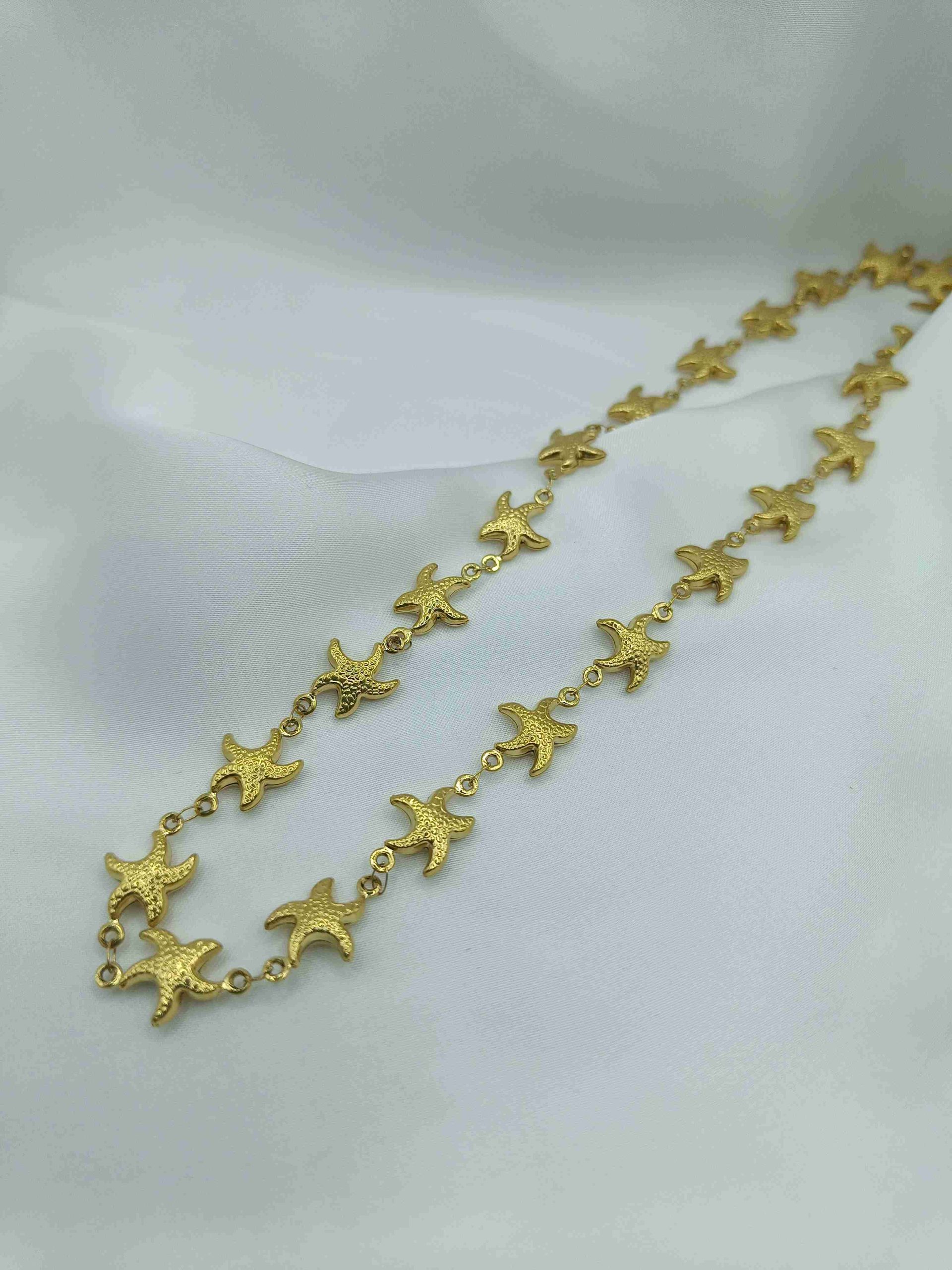 Μια λεπτή χρυσή γραμμή γεμάτη αστερίες. Το Asterine είναι ένα κομψό κολιέ από ανοξείδωτο ατσάλι με ανάγλυφους, διακριτικούς αστερίες που αγκαλιάζουν τον λαιμό σαν μια ανάσα καλοκαιριού. Ρυθμιζόμενο μήκος για να το φορέσεις σαν τσόκερ ή πιο χαλαρά – όπως σε εκφράζει.