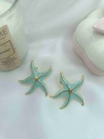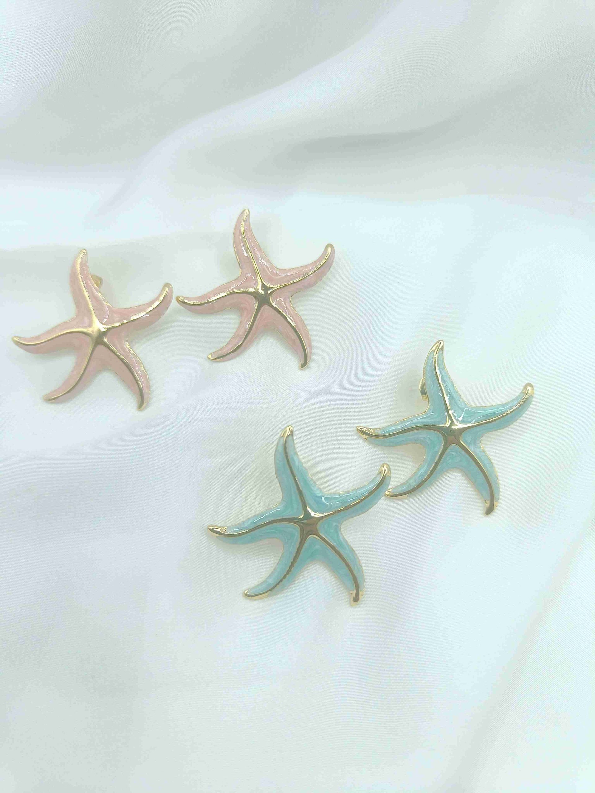 Σκουλαρίκια αστερίες από ανοξείδωτο ατσάλι σε χρυσό χρώμα, στολισμένα με τιρκουάζ σμάλτο που αποτυπώνει τη δροσιά και τη ζωντάνια του καλοκαιριού. Ιδανικά για να προσθέσεις μία ανεπιτήδευτη, φωτεινή πινελιά στο look σου, φέρνοντας μαζί σου τη γαλήνη της θάλασσας όπου κι αν βρεθείς.