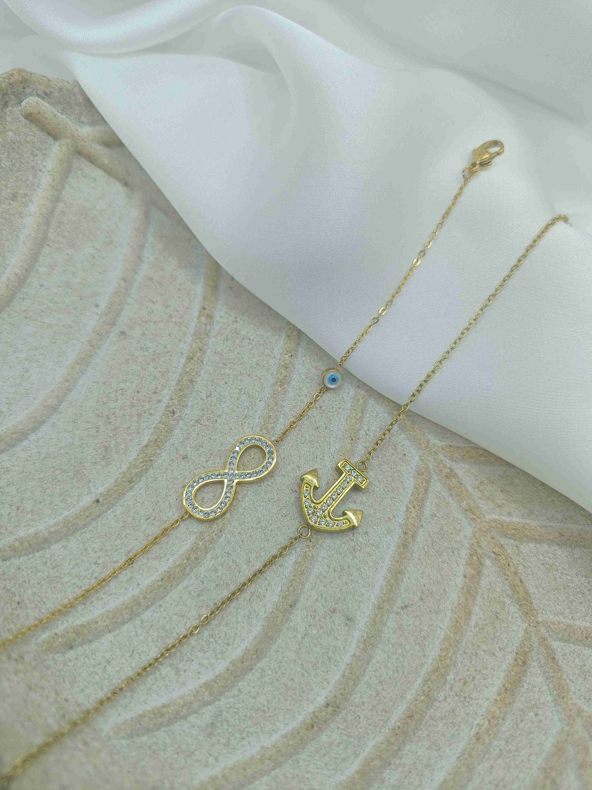 Ένα διακριτικό και κομψό βραχιόλι από ανοξείδωτο ατσάλι σε χρυσό χρώμα, με κεντρικό στοιχείο μία μικρή άγκυρα διακοσμημένη με λαμπερά λευκά ζιργκόν. Ένα σύμβολο σταθερότητας και ελευθερίας που προσδίδει θαλασσινή αύρα και νόημα στο στυλ σου.