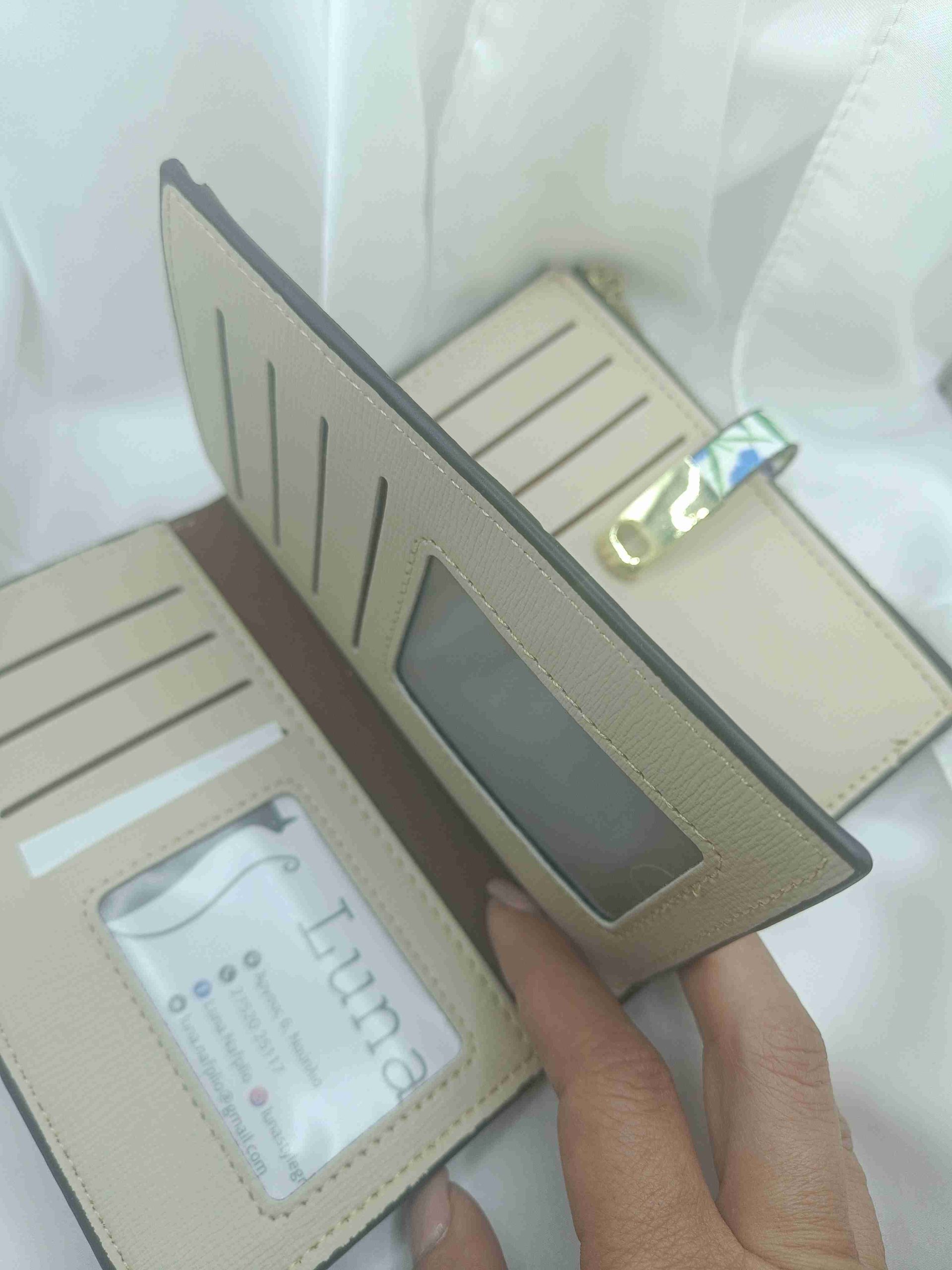 Διαθέτει θήκες για 13 κάρτες και 3 φωτογραφίες ή ταυτότητα, 6 μεγαλύτερες θήκες πίσω από τις κάρτες, θήκη με φερμουάρ για κέρματα και θήκη για χαρτονομίσματα.