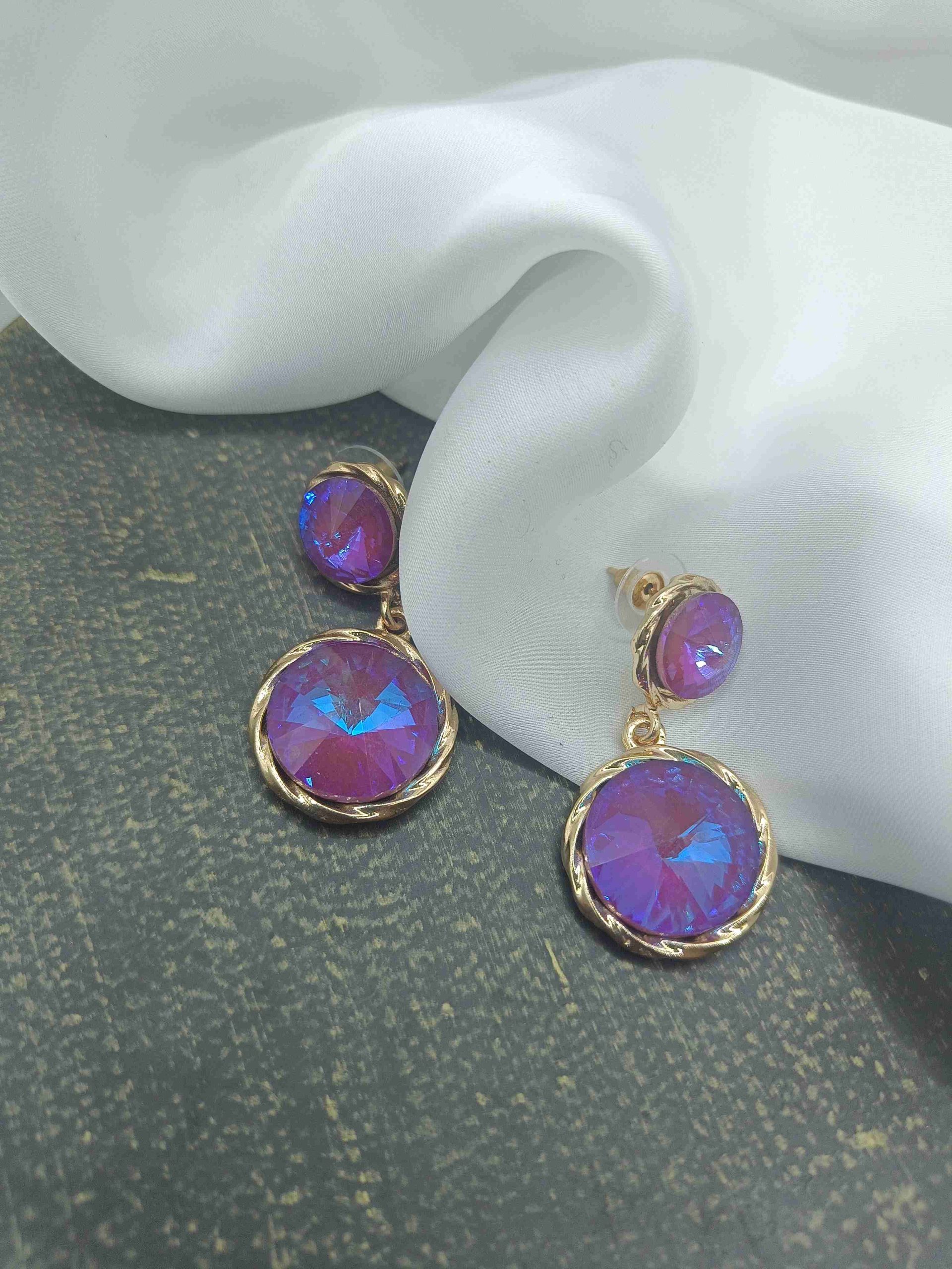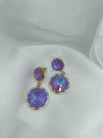 Το σκουλαρίκι Caelira συνδυάζει αρμονικά τη διακριτική κομψότητα με τη δυναμική παρουσία. Αποτελείται από δύο κυκλικούς μοβ κρυστάλλους —ο ένας μικρότερος και καρφωτός στο αυτί, ενώ ο δεύτερος, μεγαλύτερος, αιωρείται ακριβώς από κάτω, δημιουργώντας μια αίσθηση ισορροπίας και ροής. Οι πλούσιες αποχρώσεις του μοβ αποπνέουν μυστήριο και πολυτέλεια, καθιστώντας το ιδανική επιλογή για βραδινές εμφανίσεις με αίσθηση φινέτσας και λάμψης.