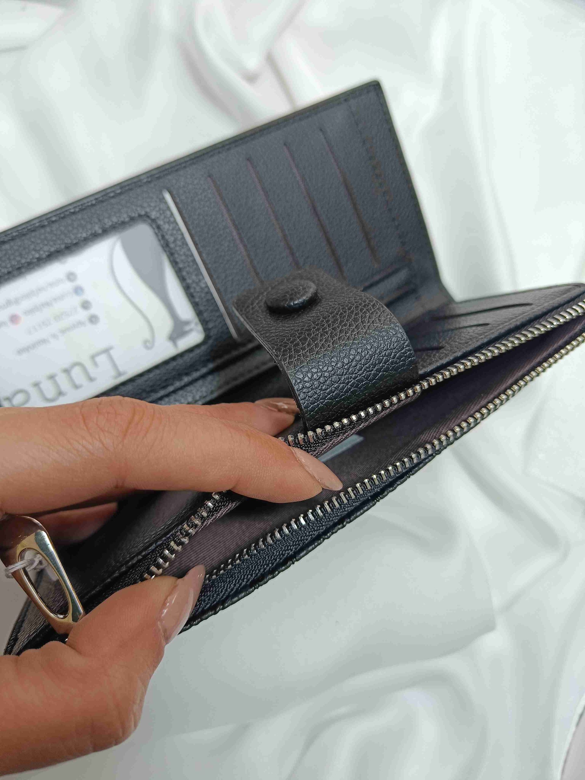 Διαθέτει ευρύχωρες εσωτερικές θήκες για χαρτονομίσματα, κέρματα και κάρτες, ενώ κλείνει με φερμουάρ για μέγιστη ασφάλεια.