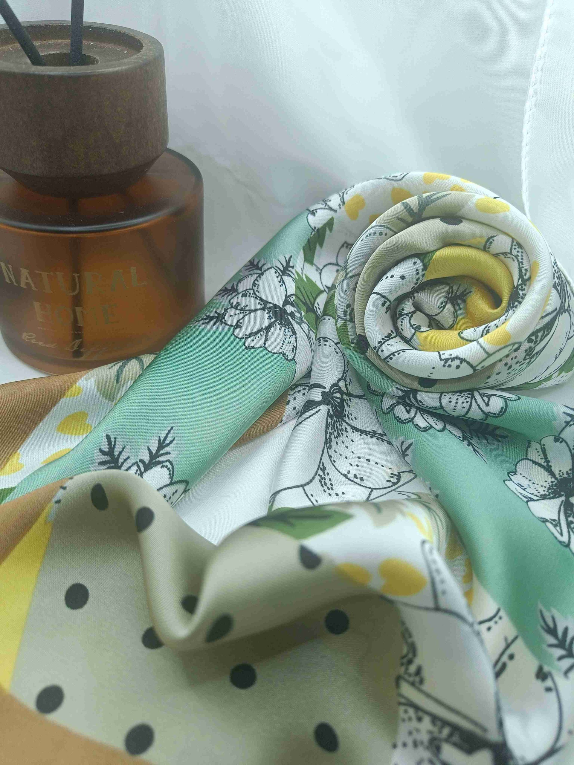 Γυναικείο μαντήλι με πολύχρωμα και διαφορετικά σχέδια.