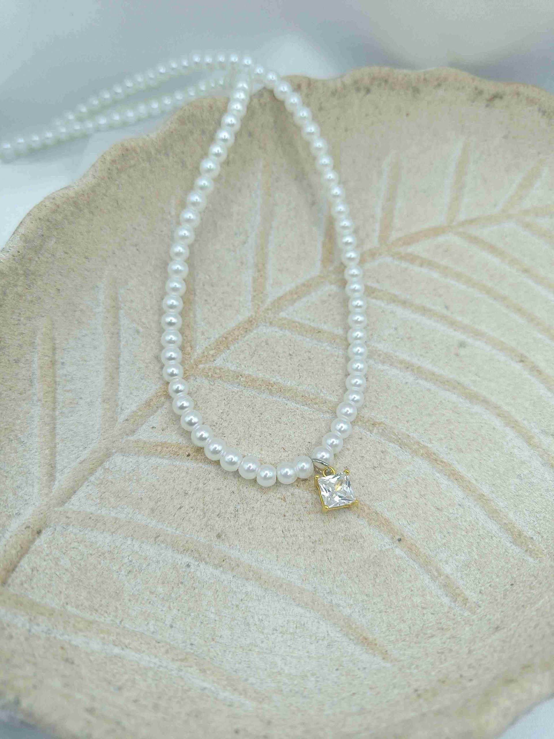 Το Celina είναι ένα εκλεπτυσμένο κολιέ που συνδυάζει την κλασική κομψότητα των μαργαριταριών με τη λάμψη ενός τετραγωνικού λευκού ζιργκόν στο κέντρο. Η αρμονική σύνθεση προσδίδει διαχρονική γοητεία και φωτεινότητα, αναδεικνύοντας το ντελικάτο σχέδιο με κάθε κίνηση.