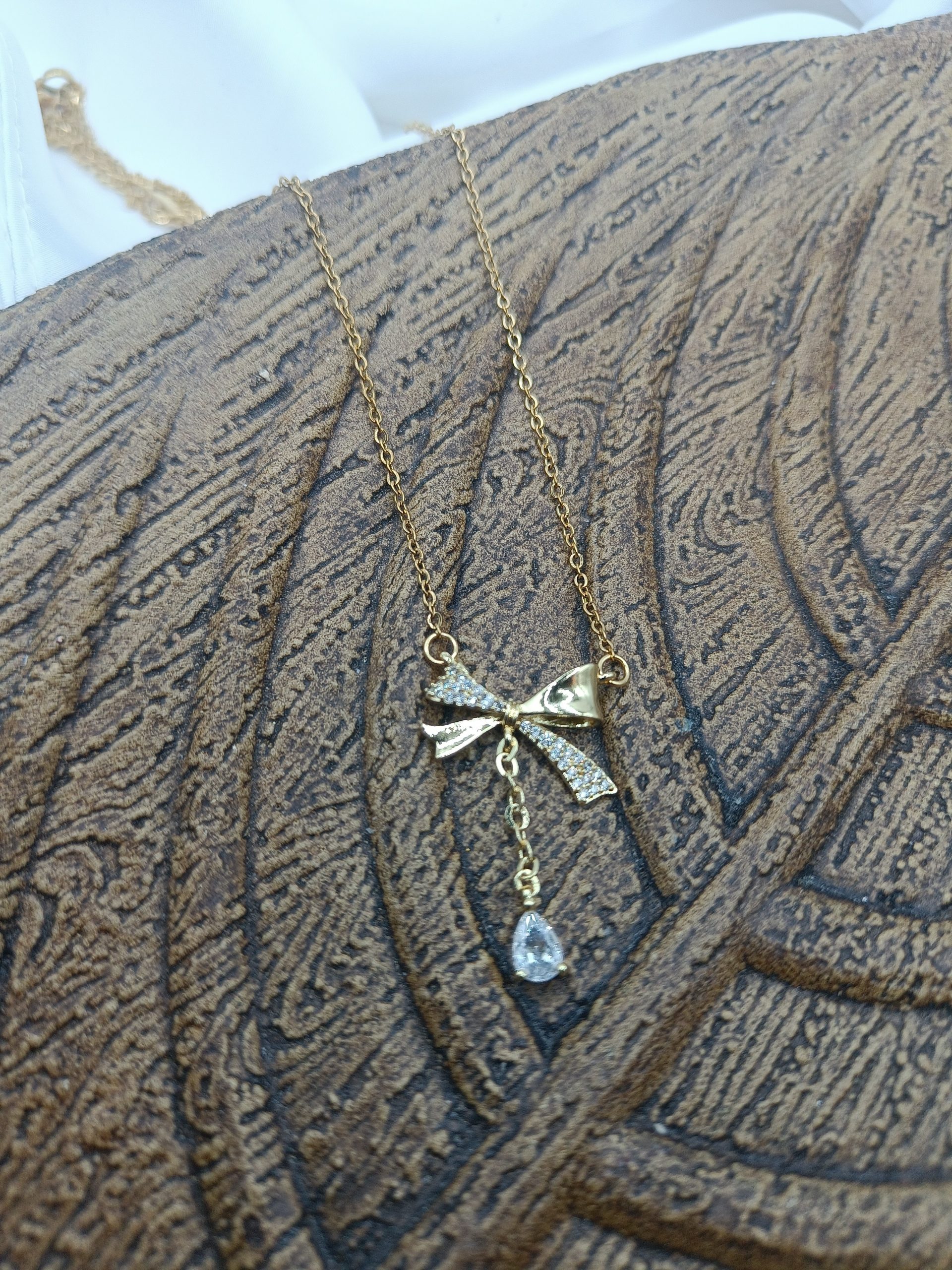 Διαστάσεις κεντρικού στοιχείου (φιόγκος) : 3cm (μαζί με αλυσίδα και κρεμαστό ζιργκόν) x 2,2cm