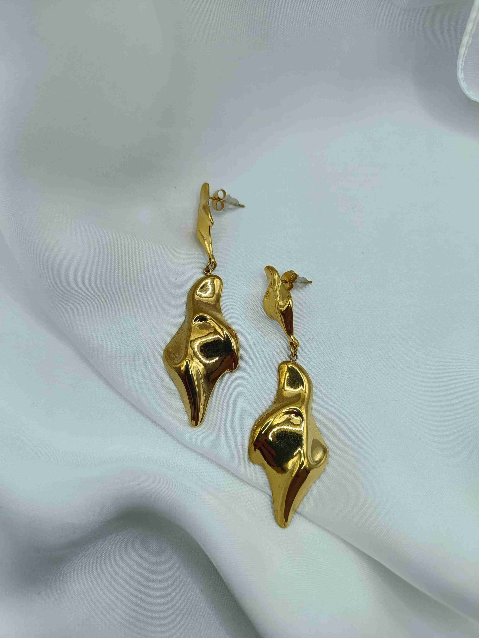 Το σκουλαρίκι Delyra, από ανοξείδωτο ατσάλι, συνδυάζει δύο ακανόνιστα σχήματα που μοιάζουν με σταλαγμένα κομμάτια υφάσματος, δημιουργώντας μια μοναδική αίσθηση κίνησης και φυσικής ροής. Το επάνω μέρος, πιο μικρό και διακριτικό, αγκαλιάζει το λοβό, ενώ το μεγαλύτερο κομμάτι πέφτει με χάρη, χαρίζοντας ένα εντυπωσιακό αλλά εκλεπτυσμένο αποτέλεσμα.