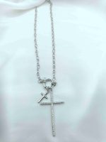 Το Dualis είναι ένα κολιέ με statement αλυσίδα από ανοξείδωτο ατσάλι και εντυπωσιακό στρογγυλό κούμπωμα στο μπροστινό μέρος, απ’ όπου κρέμονται δύο σταυροί — ένας με λαμπερά στρας και ένας πιο λιτός, χωρίς στολίδια. Ένα κόσμημα που ισορροπεί ανάμεσα στη δύναμη και την κομψότητα, τη λάμψη και την απλότητα.
