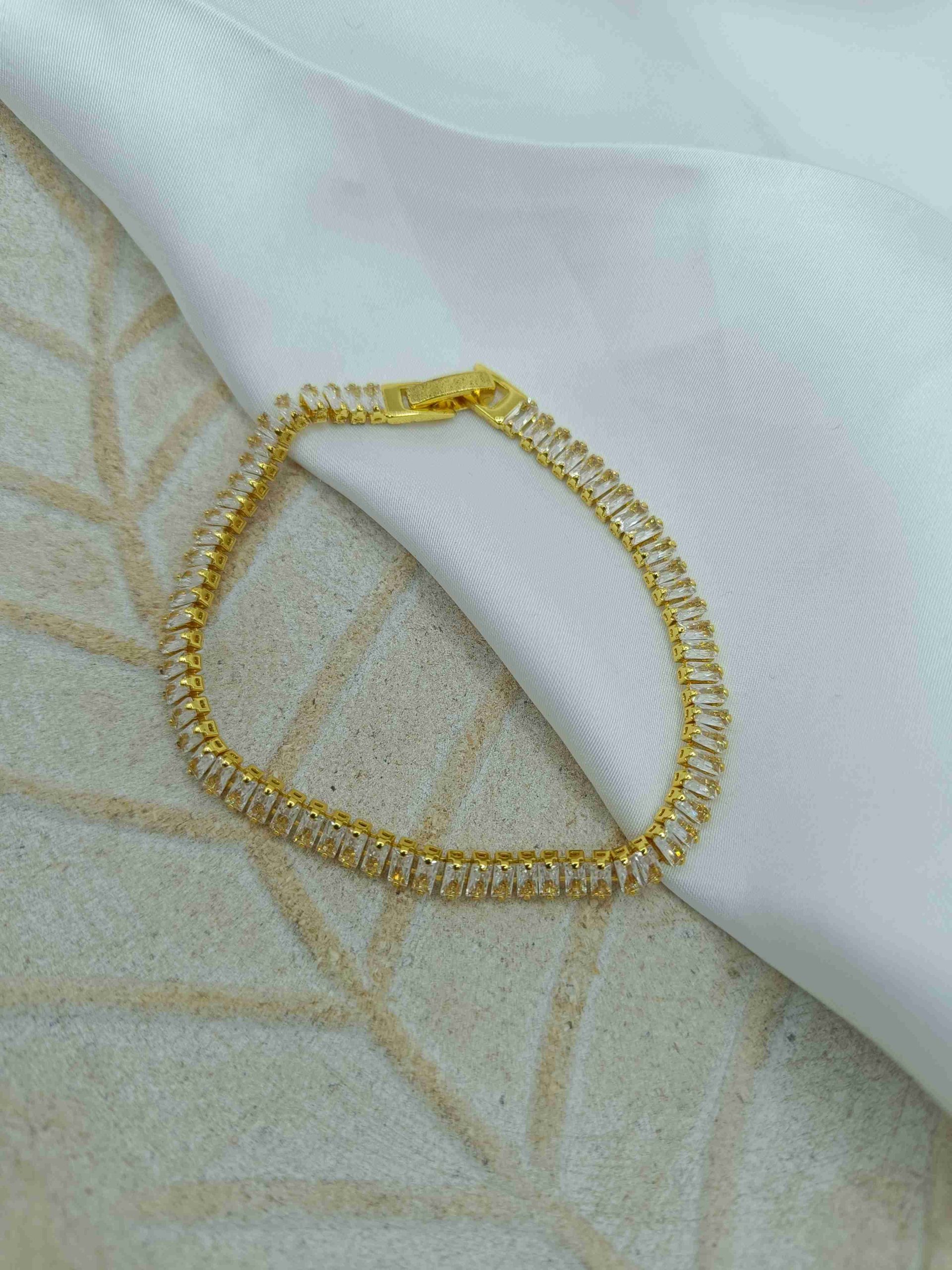 Το Eirene είναι ένα εκλεπτυσμένο βραχιόλι που αποπνέει διαχρονική λάμψη και κομψότητα. Διακοσμημένο με μακρόστενα στρας που αιχμαλωτίζουν το φως σε κάθε κίνηση, αυτό το κόσμημα αποτελεί σύμβολο διακριτικής πολυτέλειας. Το κουμπώμα ασφαλείας εξασφαλίζει άνεση και σταθερότητα, καθιστώντας το ιδανικό για κάθε περίσταση.