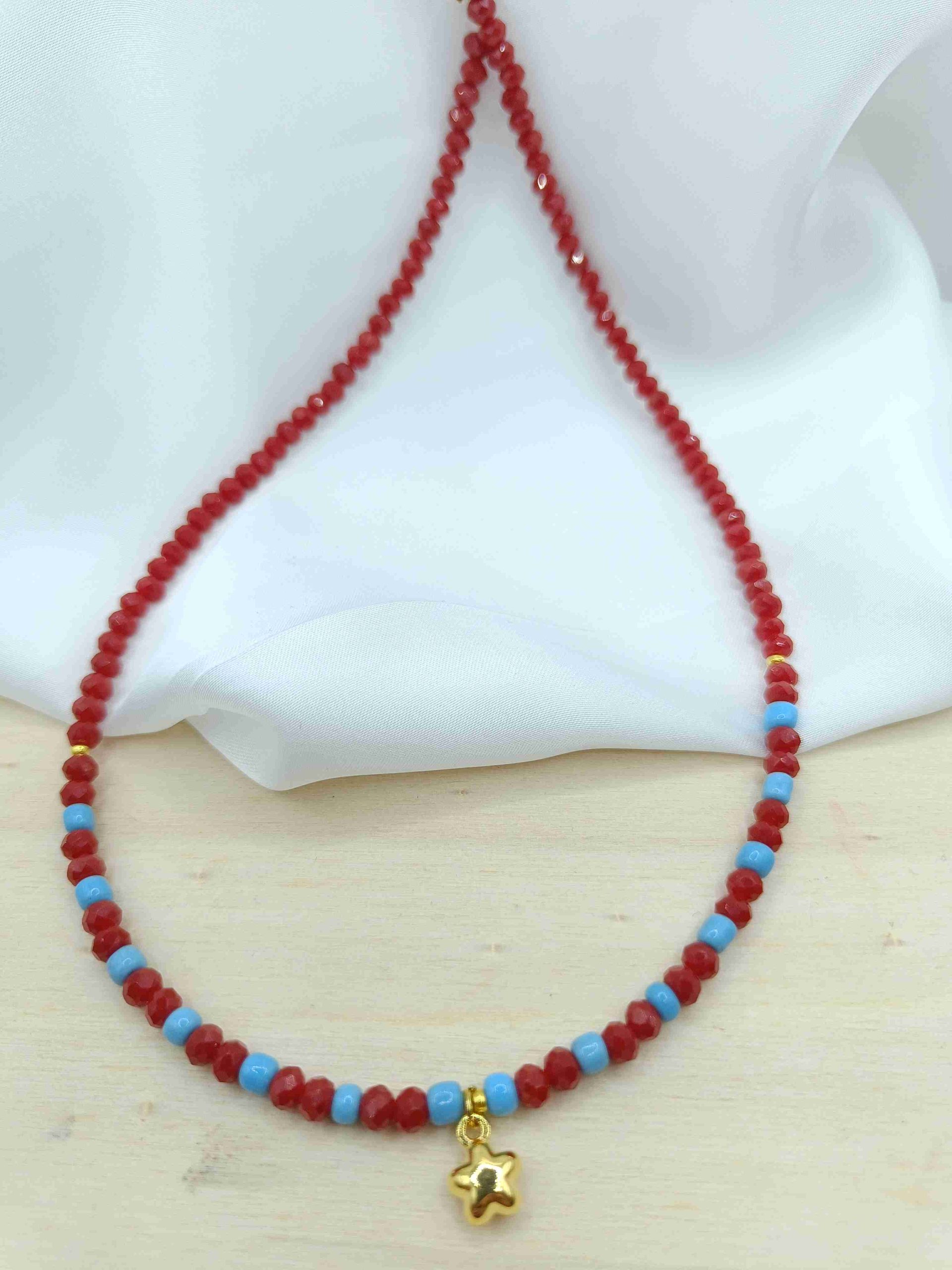 Το Ellure Red εκπέμπει ζωντάνια και δυναμισμό με κόκκινες χάντρες που εναλλάσσονται αρμονικά με πινελιές τιρκουάζ, σαν καρδιοχτύπια καλοκαιρινής ενέργειας. Στο κέντρο του, ένα κρεμαστό αστεράκι φωτίζει τη σύνθεση – μια λεπτομέρεια που προσθέτει ανεπιτήδευτη λάμψη και παιχνιδιάρικη αύρα.
