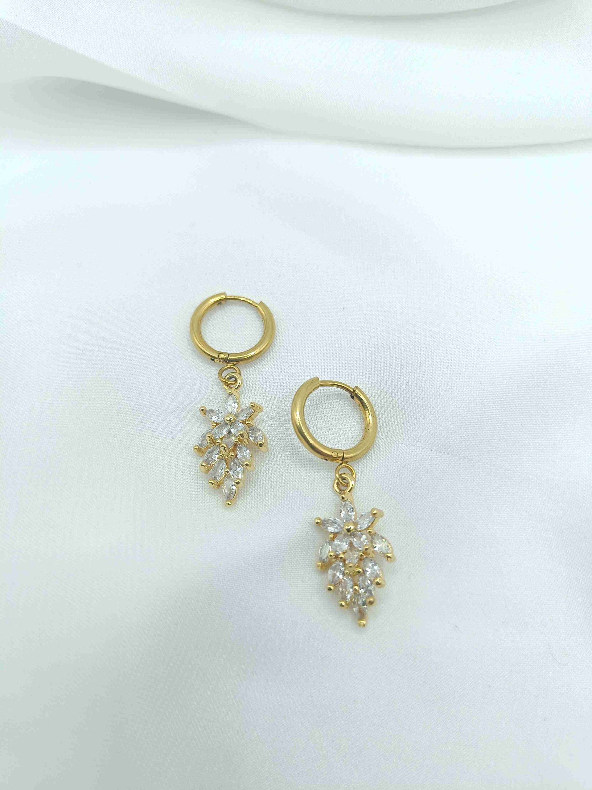 Τα σκουλαρίκια Elune είναι λεπτά κρικάκια που αγκαλιάζουν διακριτικά το αυτί, με ένα μικρό, κρεμαστό φυλλαράκι στολισμένο με λευκά ζιργκόν. Απαλά, φωτεινά και γεμάτα χάρη, συνδυάζουν τη φυσική ομορφιά της φύσης με τη λάμψη της θηλυκότητας, δημιουργώντας ένα κομψό αξεσουάρ για κάθε στιγμή που θέλεις να προσθέσεις μια νότα φινέτσας και ονείρου.