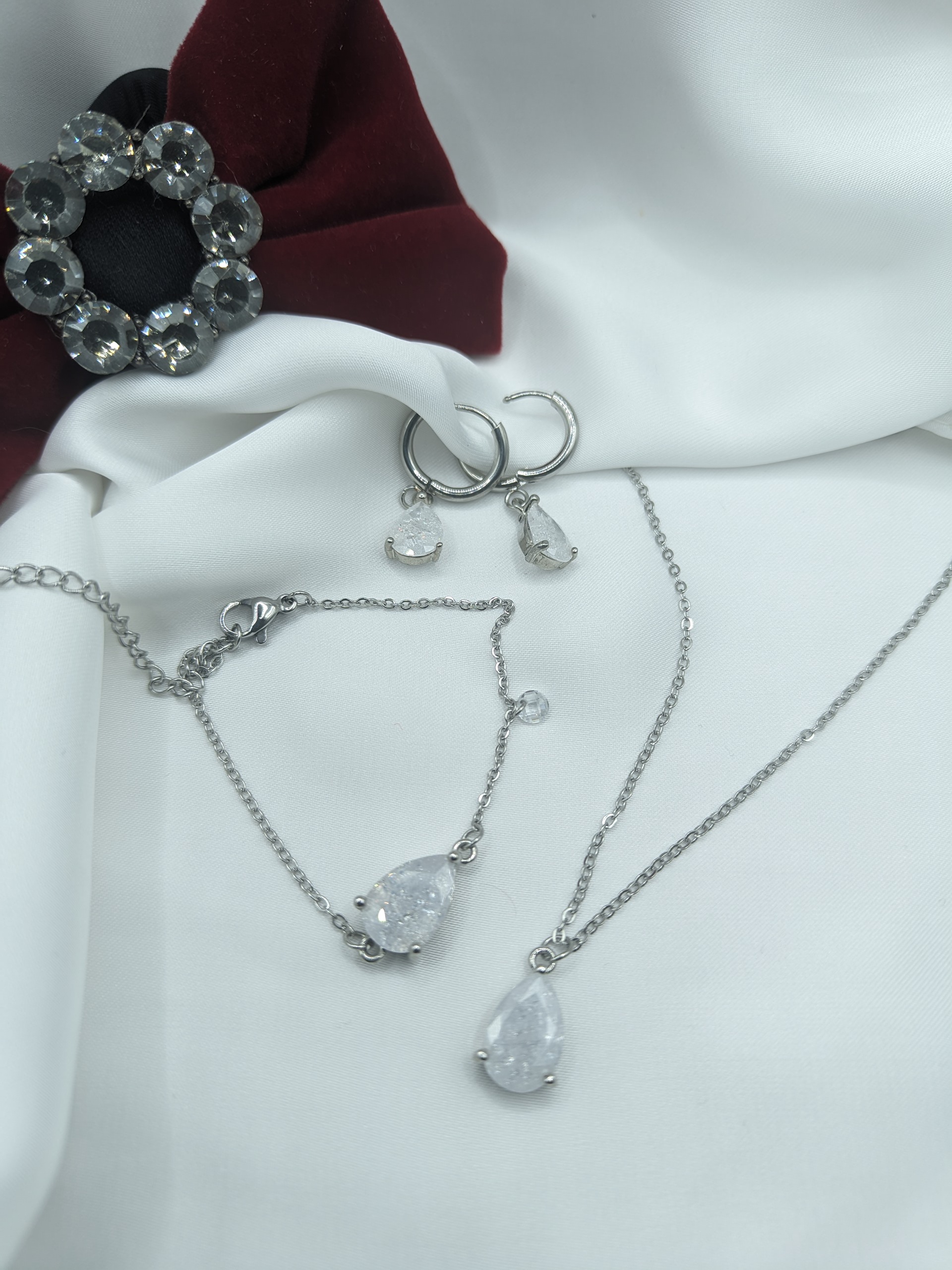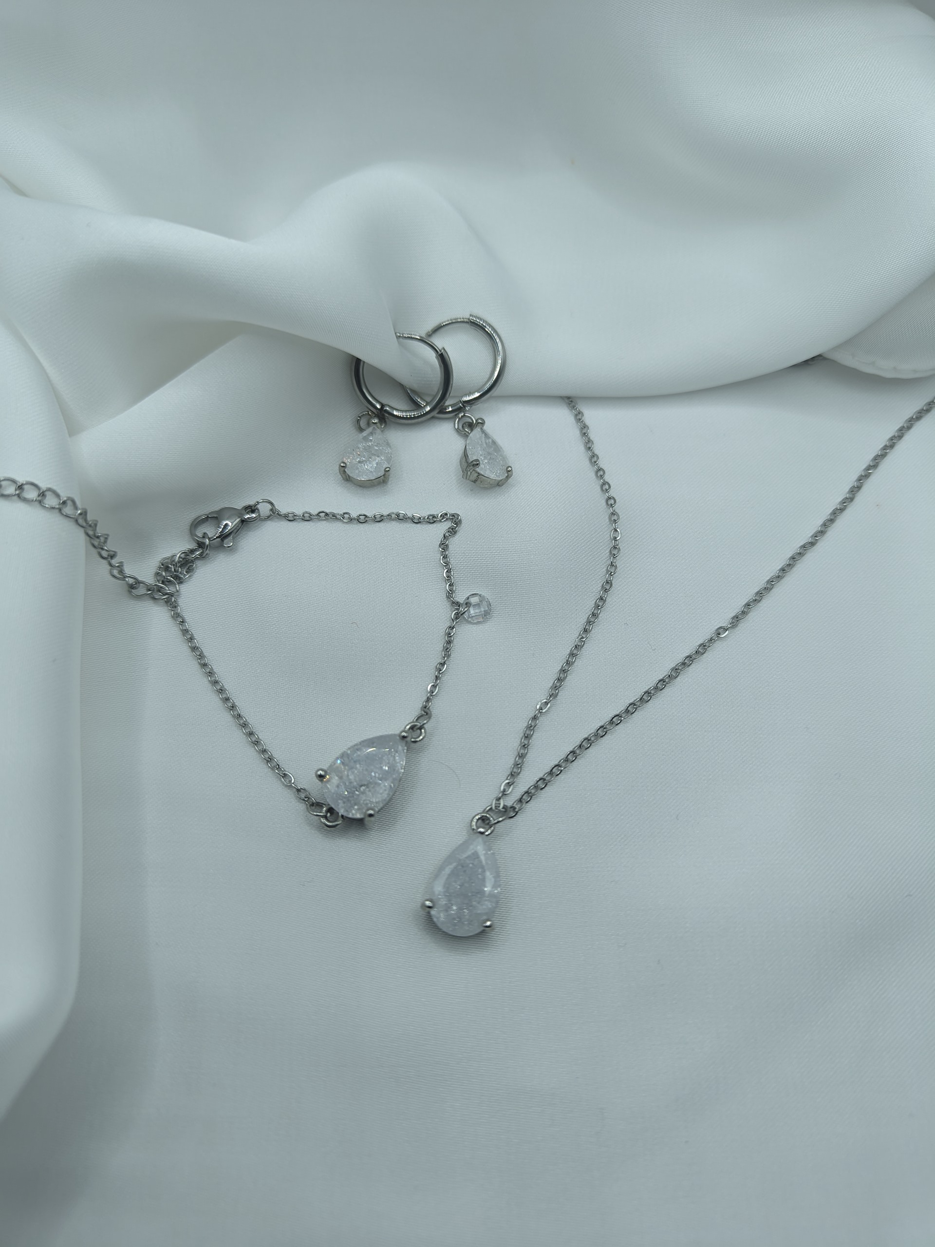 Σετ κολιέ, βραχιόλι και σκουλαρίκια με λευκή πέτρα “δάκρυ”