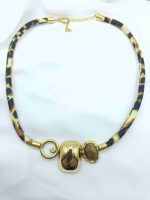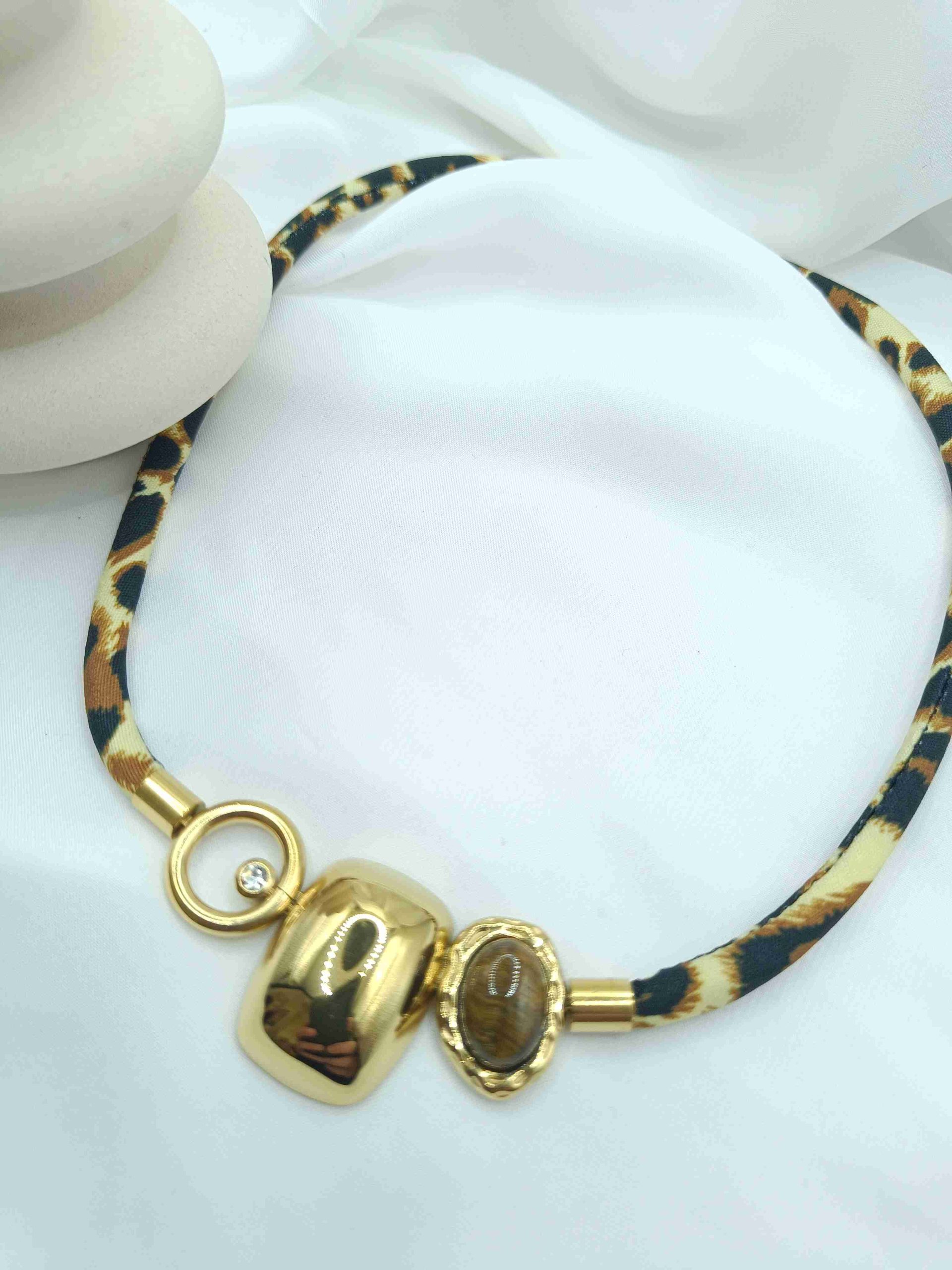 Το Fiera είναι ένα statement κολιέ που συνδυάζει το animal print με τολμηρές χρυσές λεπτομέρειες. Οι γεωμετρικές του φόρμες και η μοναδική πέτρα στο κέντρο το καθιστούν ιδανικό για γυναίκες που θέλουν να εκφράσουν δυναμισμό και κομψότητα με μία μόνο κίνηση. Ένα κόσμημα που αποπνέει πάθος και αυτοπεποίθηση.