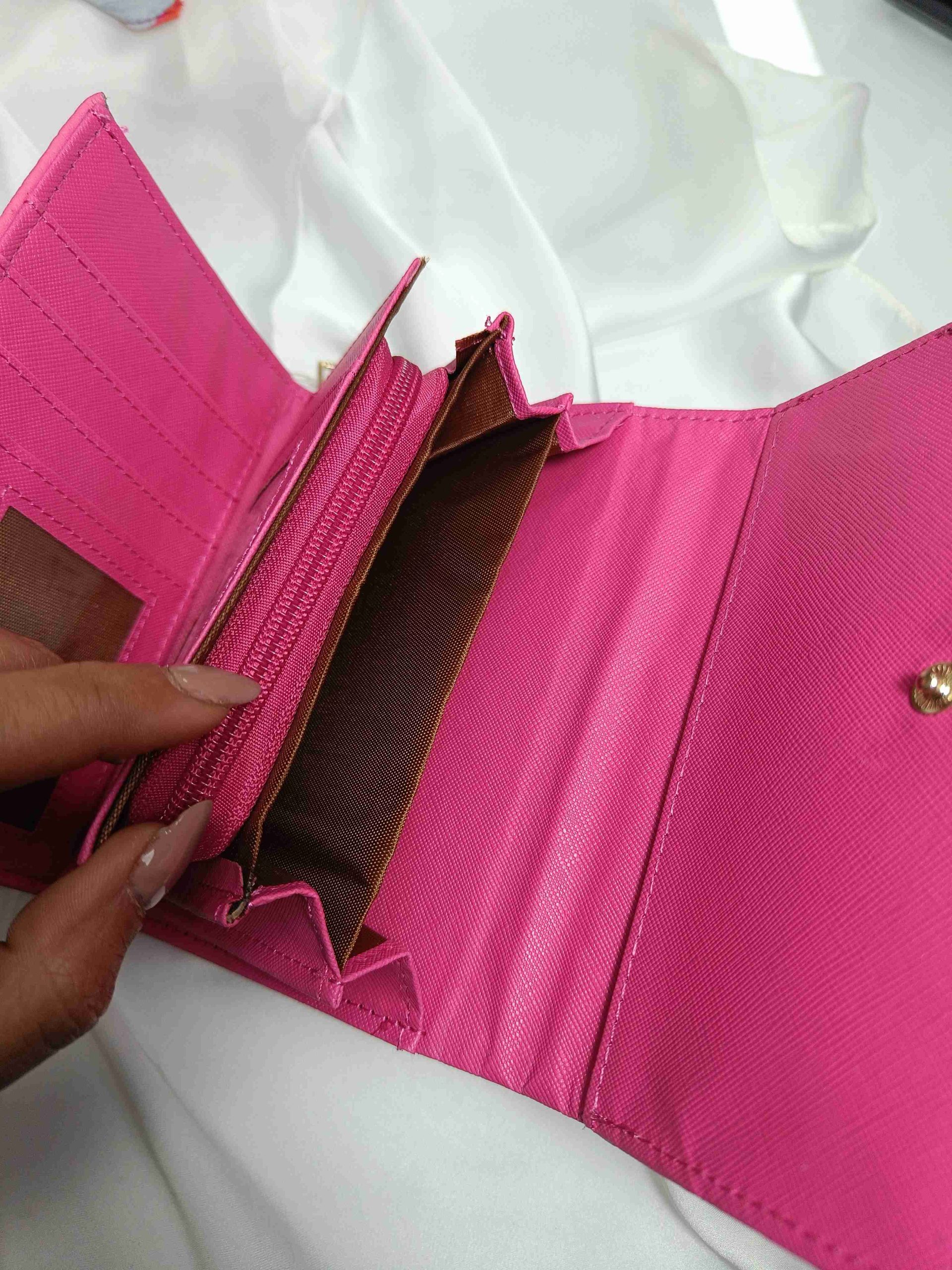 Διαθέτει ευρύχωρες εσωτερικές θήκες για χαρτονομίσματα, κέρματα και κάρτες, ενώ κλείνει με κουμπί και φερμουάρ για μέγιστη ασφάλεια.