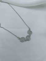 Το Irva ενώνει τον μινιμαλισμό με τη λάμψη μέσα από έναν κομψό χορό γεωμετρίας και φωτός. Τρεις στρογγυλές σπείρες, διακοσμημένες με στρας, τοποθετημένες αρμονικά η μία δίπλα στην άλλη στο κέντρο της αλυσίδας, δημιουργούν ένα δυναμικό σημείο εστίασης που αποπνέει ισορροπία και διακριτική πολυτέλεια.
