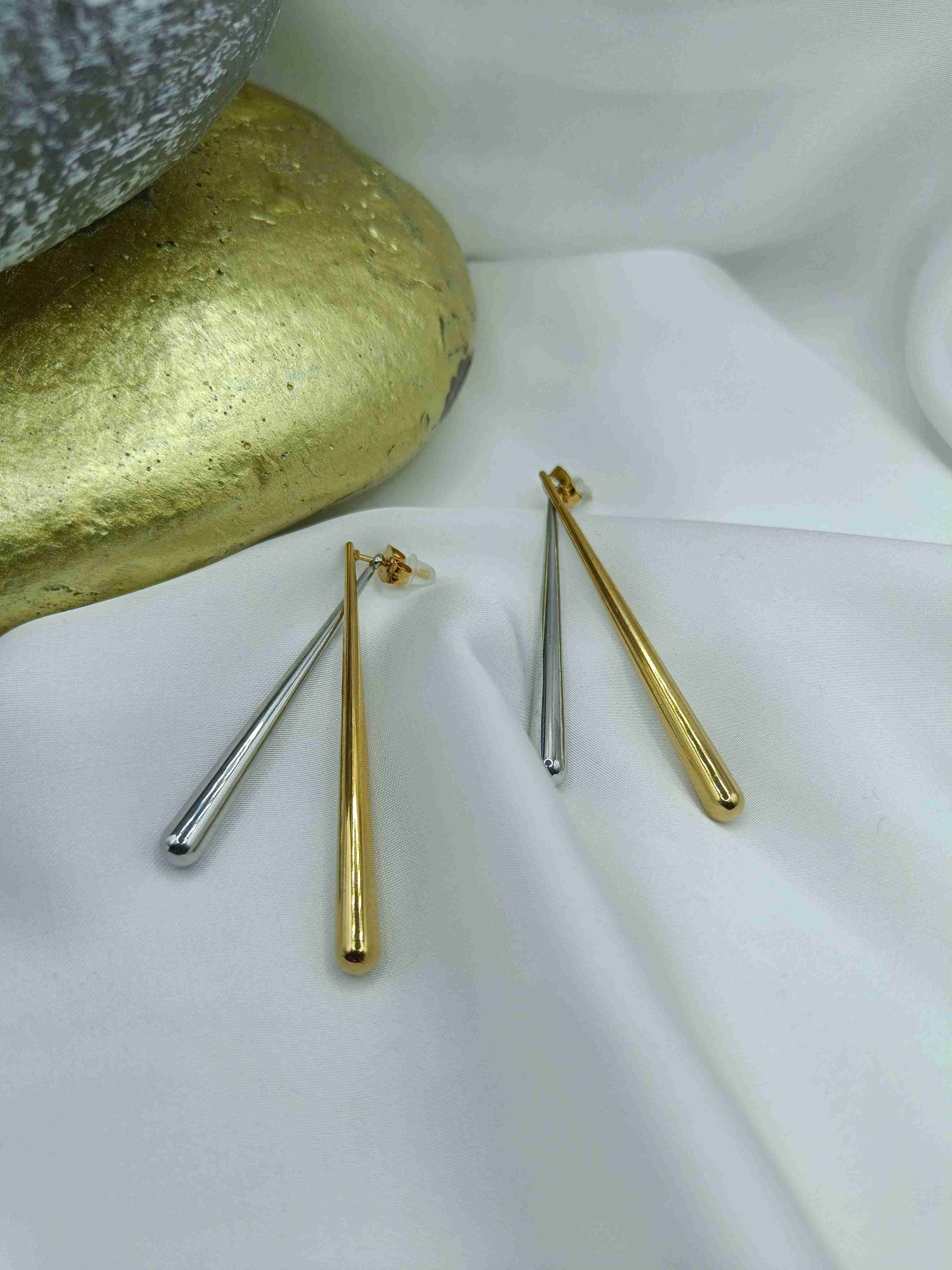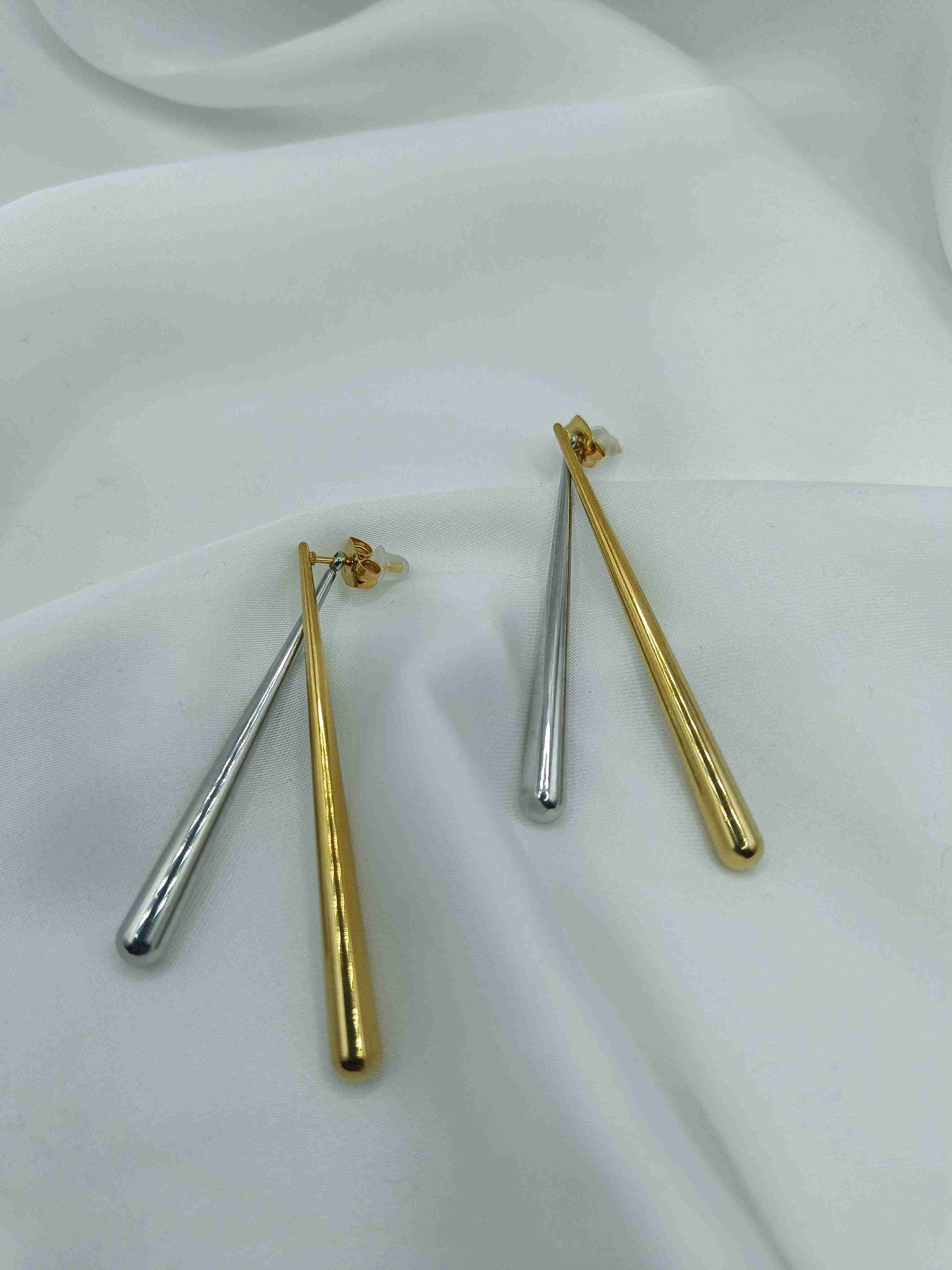 Κομψά ατσαλινα σκουλαρίκια σε χρυσό και ασημί χρώμα, που προσφέρουν πολλές δυνατότητες στιλ. Φοριούνται είτε μαζί για μια αρμονική εμφάνιση είτε μόνο το χρυσό για πιο minimal look. Ιδανικά για να φορεθούν μπροστά και πίσω στο αυτί, με το χρυσό μπροστά και το ασημί από πίσω, ή να φορεθούν ταυτόχρονα στο μπροστινό μέρος για μια τολμηρή εμφάνιση. Ιδανικά για κάθε περίσταση, προσφέρουν μια διαχρονική αίσθηση κομψότητας και φινέτσας.