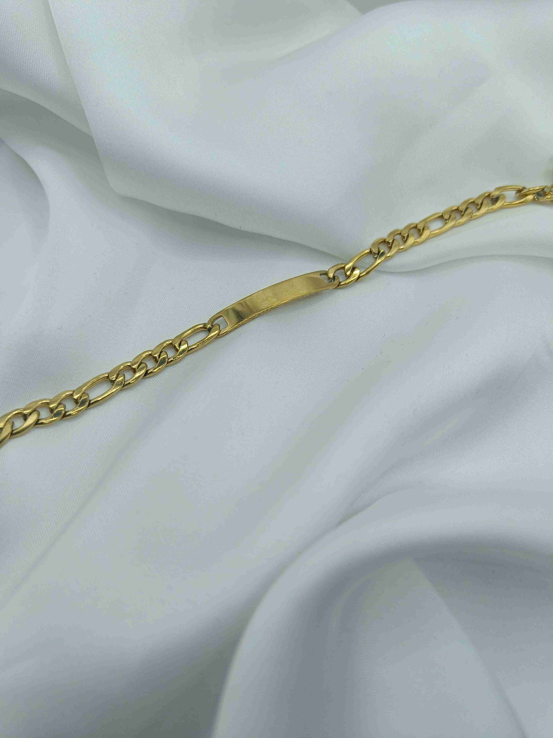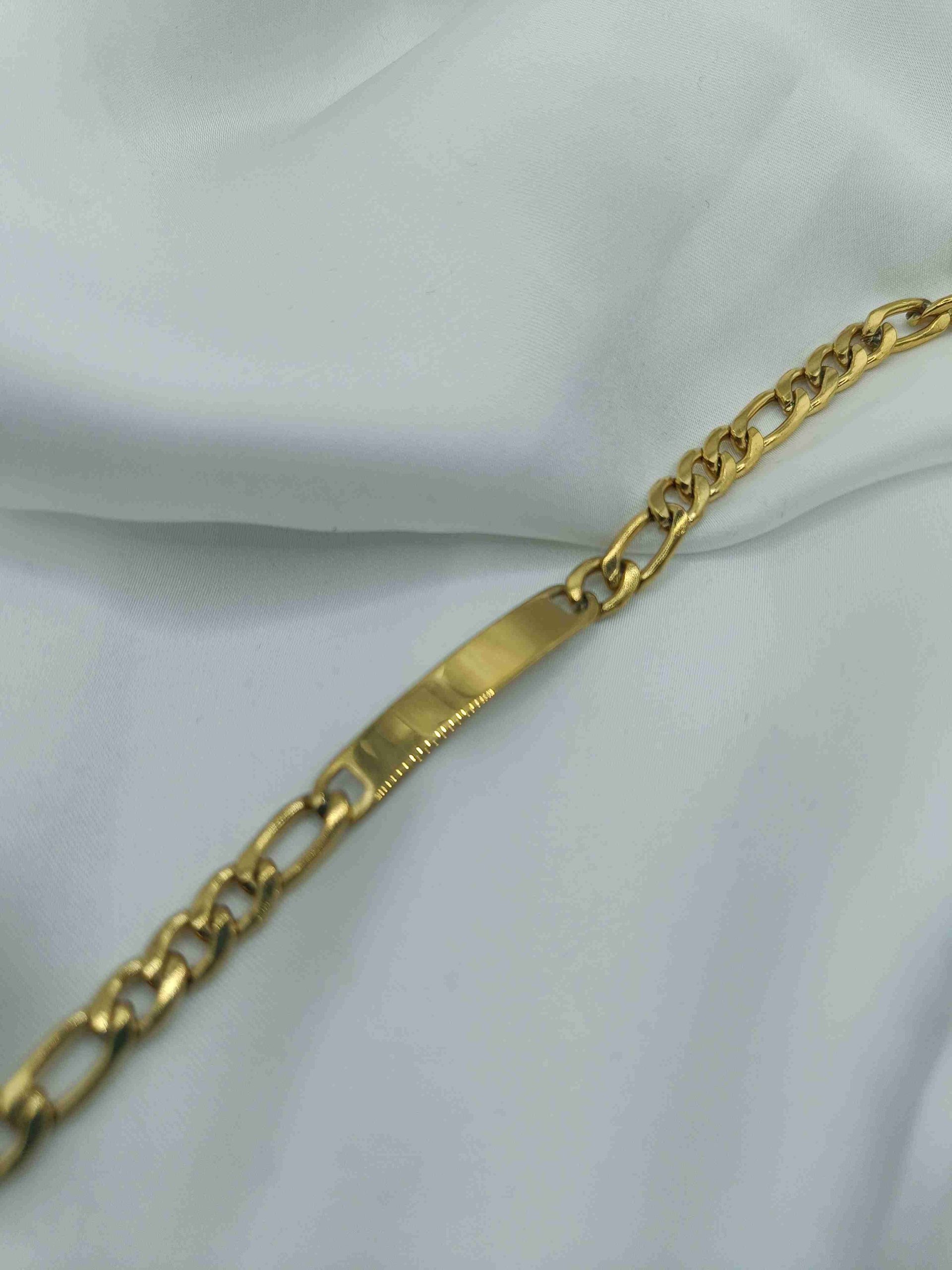 Το Kaire είναι ένα μοντέρνο βραχιόλι τύπου ταυτότητα από ανοξείδωτο ατσάλι, σε χρυσό χρώμα, που συνδυάζει τον minimal σχεδιασμό με urban αισθητική. Η επίπεδη επιφάνειά του στο κέντρο δίνει την αίσθηση ενός δυναμικού statement κομματιού, ενώ η διακριτική του λάμψη το καθιστά ιδανικό για κάθε περίσταση — από το πρωί μέχρι το βράδυ.