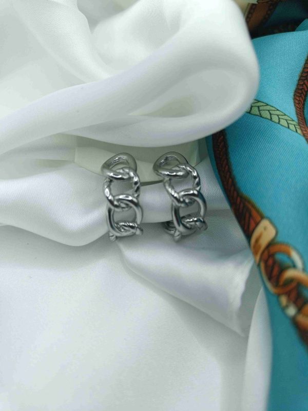 Κούμπωμα καρφωτό Linka — ο κρίκος που ενώνει το κλασικό με το σύγχρονο. Το σκουλαρίκι αυτό, εμπνευσμένο από την αλυσίδα, ξεχωρίζει για την εναλλαγή λείων και ανάγλυφων στοιχείων, δημιουργώντας ένα εντυπωσιακό παιχνίδι φωτός και υφής. Οι κρίκοι του αγκαλιάζουν το αυτί με στιλ, προσφέροντας μια bold αλλά και εκλεπτυσμένη παρουσία.