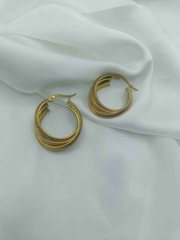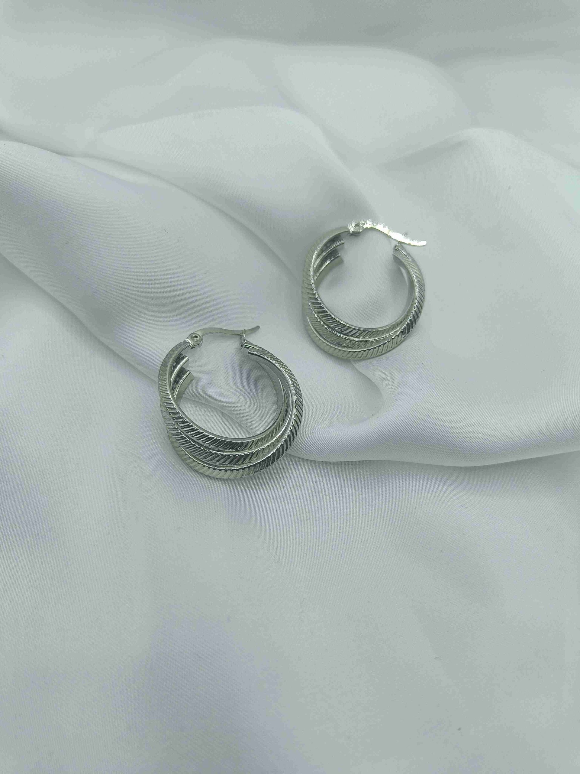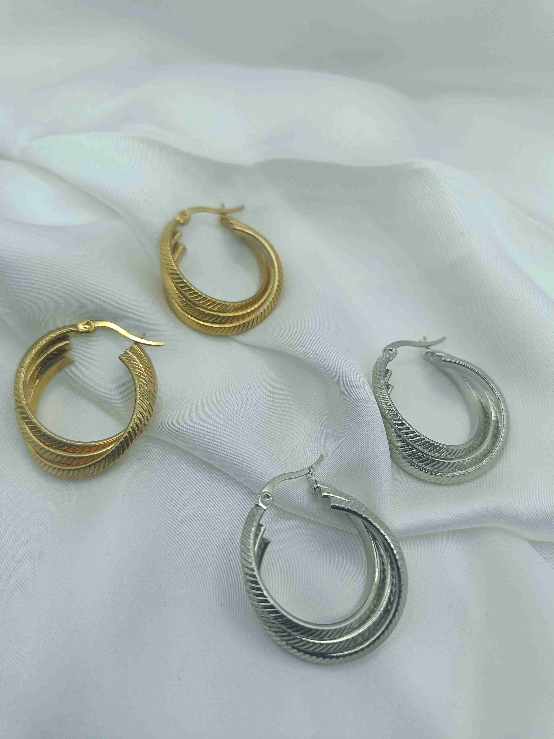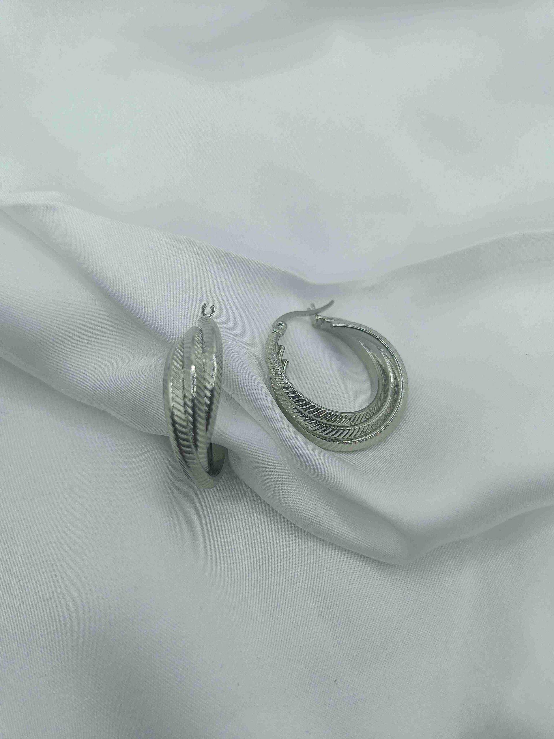 Κρίκοι μεσαίου μεγέθους από ανοξείδωτο ατσάλι με ασημί λάμψη και ανάγλυφη υφή που δημιουργεί ένα δυναμικό, σχεδόν γλυπτικό εφέ. Ιδανικοί για να αναδείξουν κάθε εμφάνιση, από πρωινό look μέχρι βραδινή έξοδο. Μπορούν να φορεθούν μόνα τους ή να συνδυαστούν με άλλα κοσμήματα της συλλογής μας για ένα ολοκληρωμένο, κομψό layering.