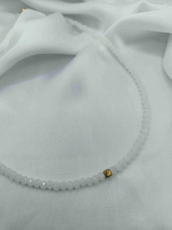 Ένα χειροποίητο βραχιόλι ποδιού με λευκές χάντρες και μια διακριτική καρδούλα από επιχρυσωμένο αιματίτη στο κέντρο. Καθαρό, φωτεινό και τρυφερό, για στιγμές όπου το απλό λέει περισσότερα.