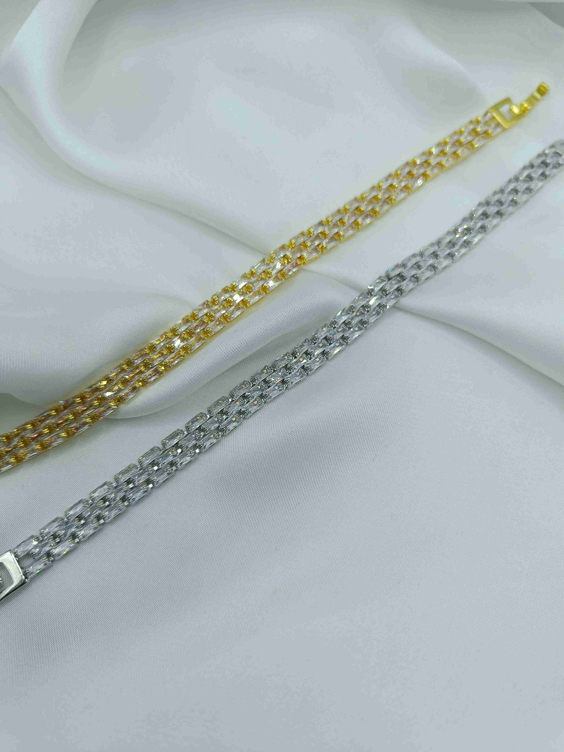Το βραχιόλι Lumia είναι η απόλυτη έκφραση κομψότητας και λάμψης. Με τρεις σειρές εντυπωσιακών στρας σε μακρόστενο σχήμα, δημιουργεί μια εκθαμβωτική λάμψη σε κάθε κίνηση. Το διαχρονικό σχέδιό του, τύπου Ριβιέρα, προσφέρει εκλεπτυσμένη κομψότητα, ιδανική για κάθε περίσταση. Ένα statement κόσμημα που συμπληρώνει τέλεια κάθε εμφάνιση.