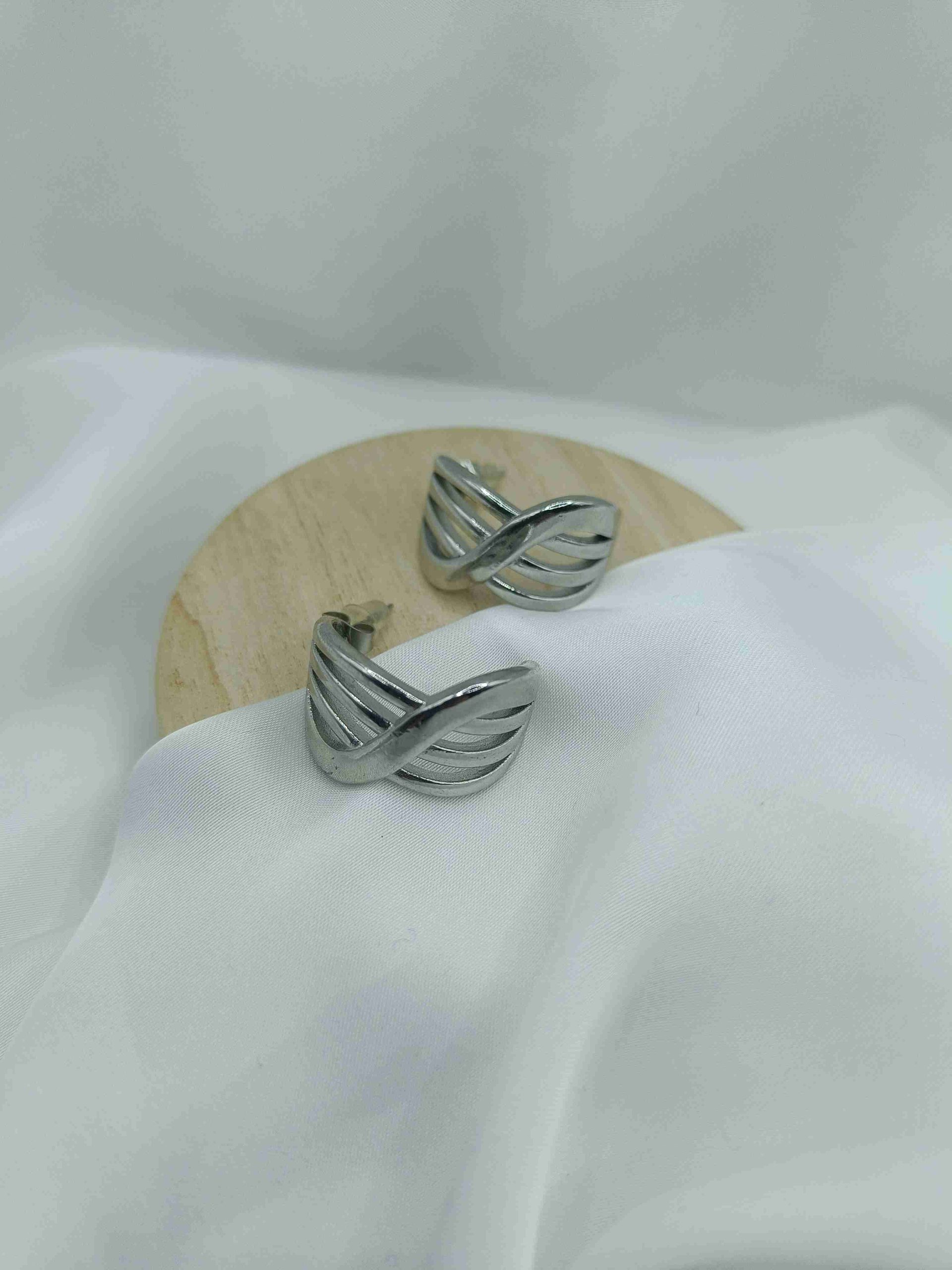 Τα Mireza είναι εντυπωσιακά σκουλαρίκια-κρίκοι σε ασημί απόχρωση, με κυματιστή, ανάγλυφη σχεδίαση που αγκαλιάζει διακριτικά το αυτί. Κατασκευασμένα από ανοξείδωτο ατσάλι, αποπνέουν ρετρό δυναμισμό και σύγχρονη κομψότητα.