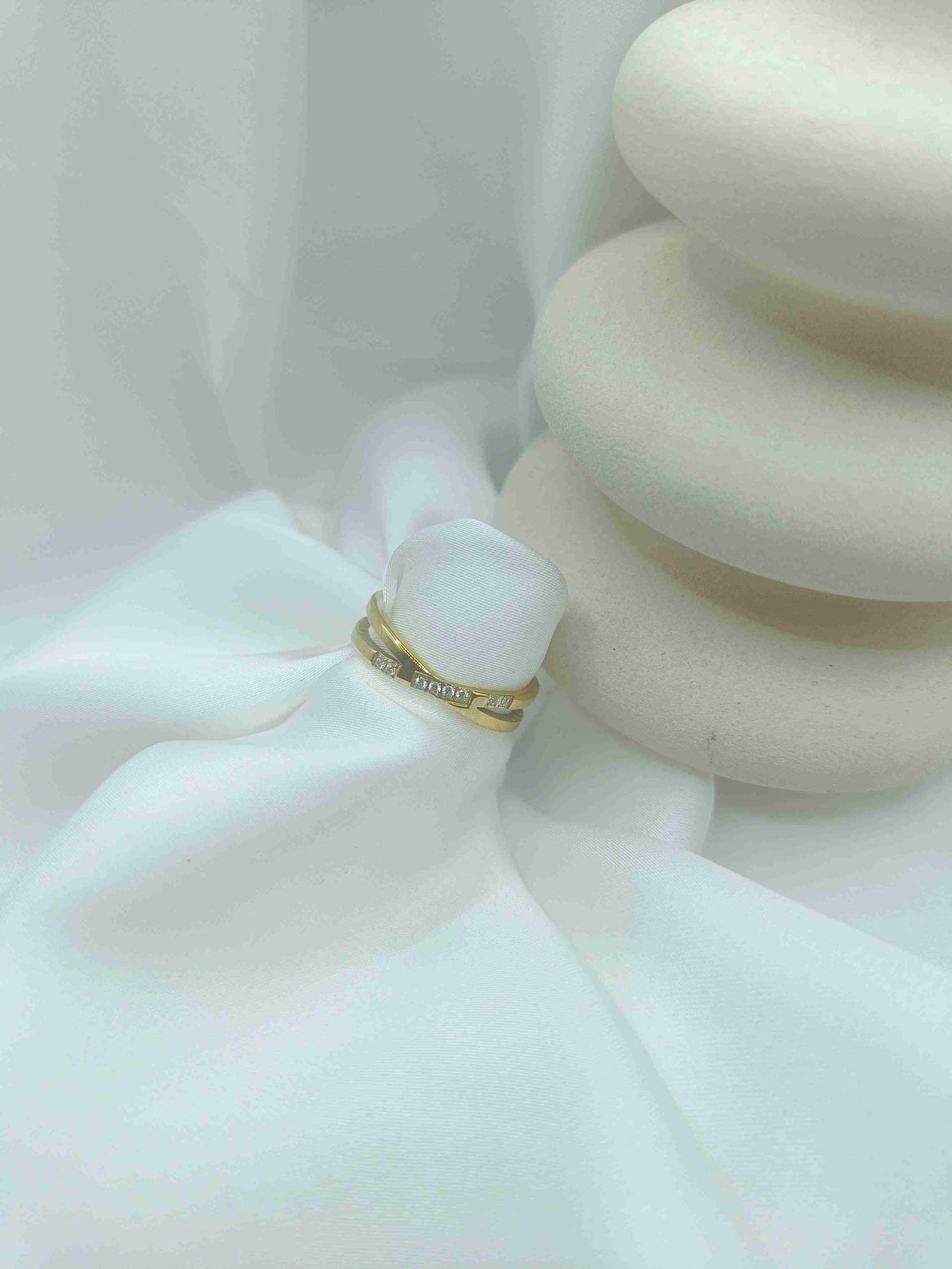 Το Naelis είναι ένα κομψό δαχτυλίδι από ανοξείδωτο ατσάλι σε χρυσή απόχρωση, σχεδιασμένο με δύο λεπτές γραμμές που συναντώνται αρμονικά στο επάνω μέρος. Οι λευκές ζιργκόν προσθέτουν μια διακριτική λάμψη, δημιουργώντας ένα ισορροπημένο παιχνίδι φωτός και σχήματος. Με minimal αισθητική και σύγχρονη γραμμή, το Naelis είναι το κόσμημα που αναδεικνύει την κομψότητα με διακριτικό στυλ.