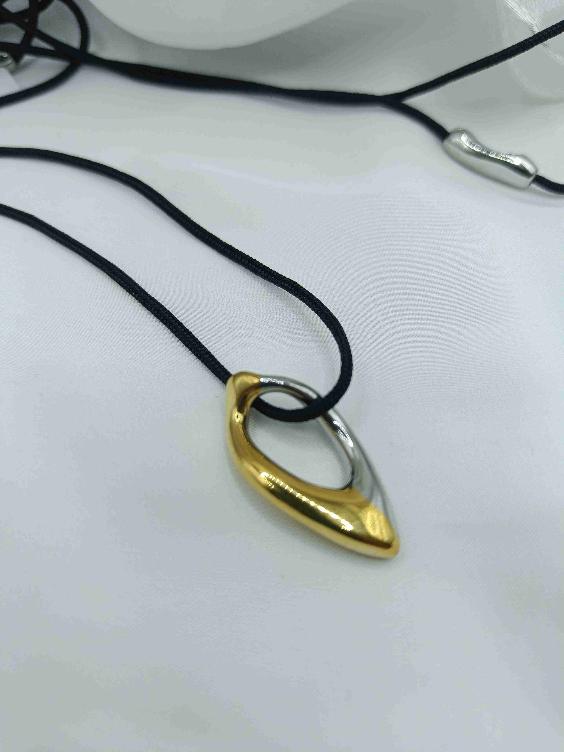 Το Nayora Litha ενώνει τη λιτή κομψότητα με την καλοκαιρινή ενέργεια του φωτός. Το οβάλ μοτίφ με διακριτική μύτη στο κάτω μέρος, σε διχρωμία χρυσού και ασημί, αποπνέει ισορροπία και φινέτσα. Αιωρούμενο σε μαύρο κορδόνι, γίνεται σύμβολο γαλήνης και διαύγειας, σαν ηλιαχτίδα που χορεύει στο νερό.