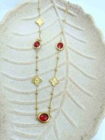 Ένα κολιέ που φλέγεται από πάθος και θηλυκότητα. Οι μπορντό πέτρες του Noctavia Ruby αποπνέουν ζεστασιά και πολυτέλεια, προσδίδοντας σε κάθε look μια αίσθηση έντασης και ρομαντισμού. Το απόλυτο κόσμημα για να δώσεις χρώμα στη βραδινή σου εμφάνιση.