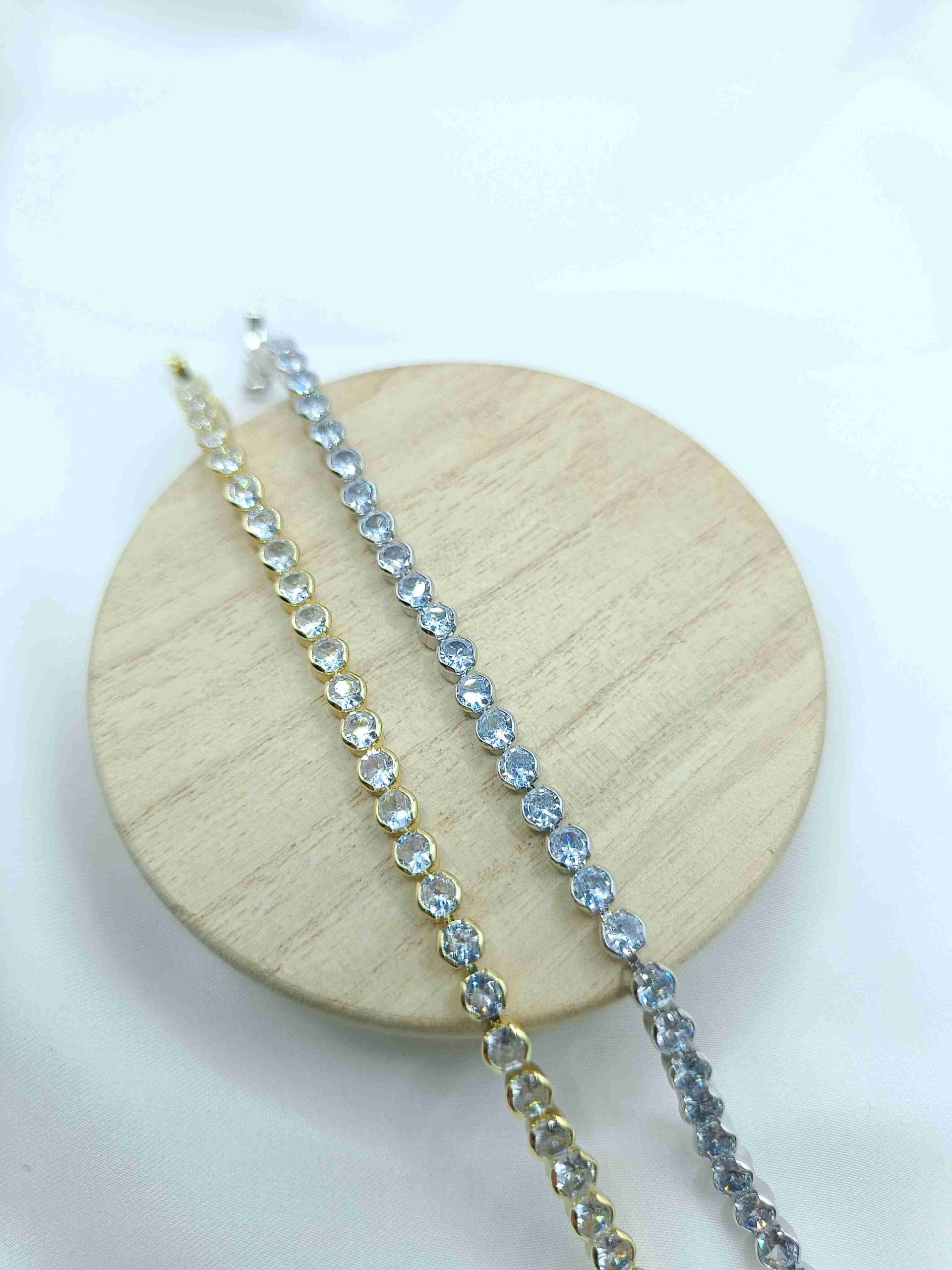 Το Oriva Bracelet αποπνέει διακριτική πολυτέλεια μέσα από τον απόλυτα ισορροπημένο σχεδιασμό του. Αποτελείται από στρογγυλά ζιργκόν που λαμπυρίζουν σε κάθε κίνηση, δημιουργώντας ένα παιχνίδι φωτός και κομψότητας. Κατασκευασμένο από ανοξείδωτο ατσάλι, συνδυάζει αντοχή και εκλεπτυσμένη αισθητική, ιδανικό για να συνοδεύει τόσο τις καθημερινές όσο και τις πιο επίσημες εμφανίσεις.