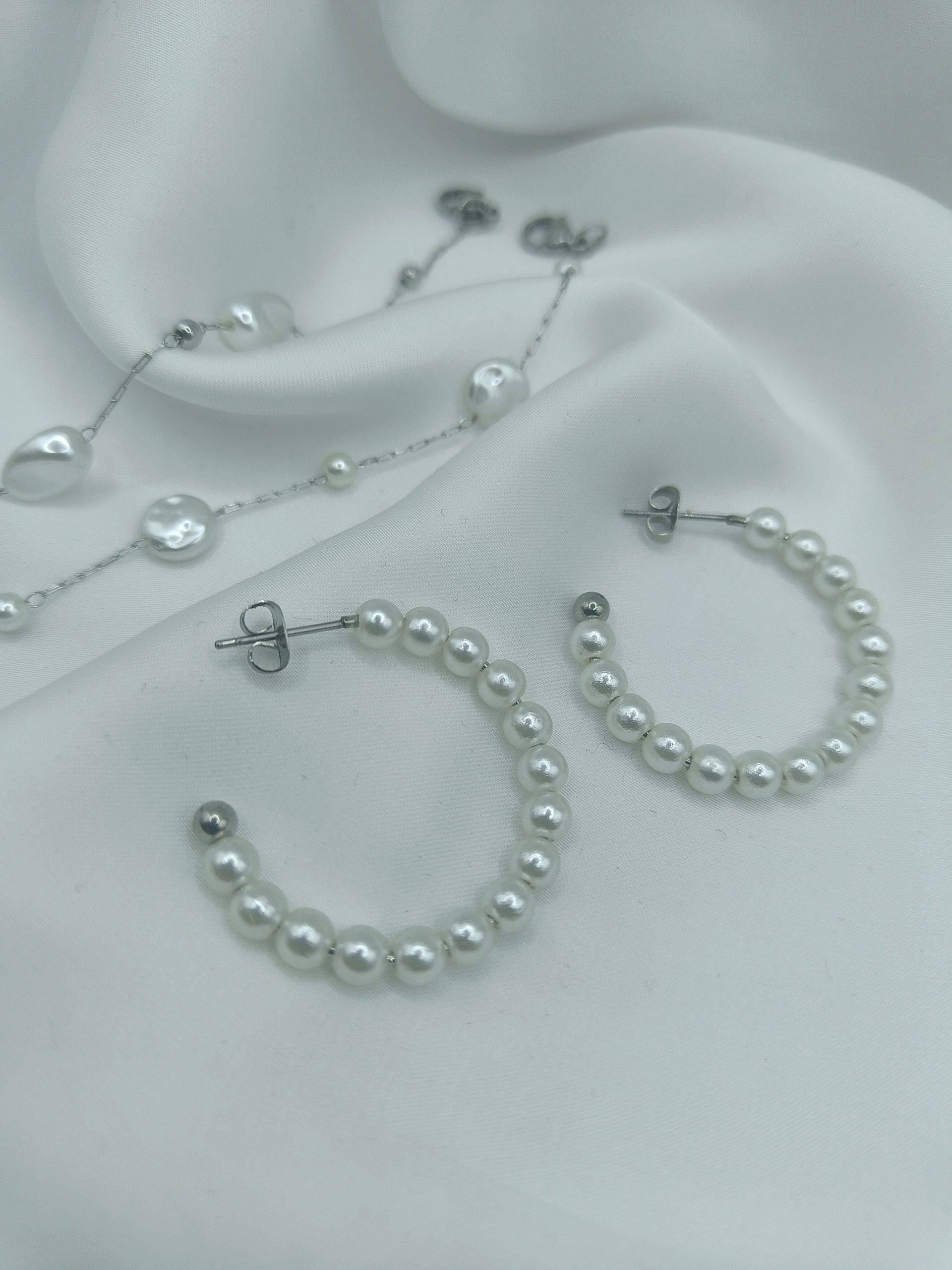 Τα σκουλαρίκια Perlé ενώνουν τη διαχρονική φινέτσα των λευκών περλών με τον μοντέρνο σχεδιασμό του κρίκου. Κατασκευασμένα από ανοξείδωτο ατσάλι, συνδυάζουν ανθεκτικότητα και στυλ, προσφέροντας μια λαμπερή αλλά διακριτική πινελιά σε κάθε εμφάνιση.