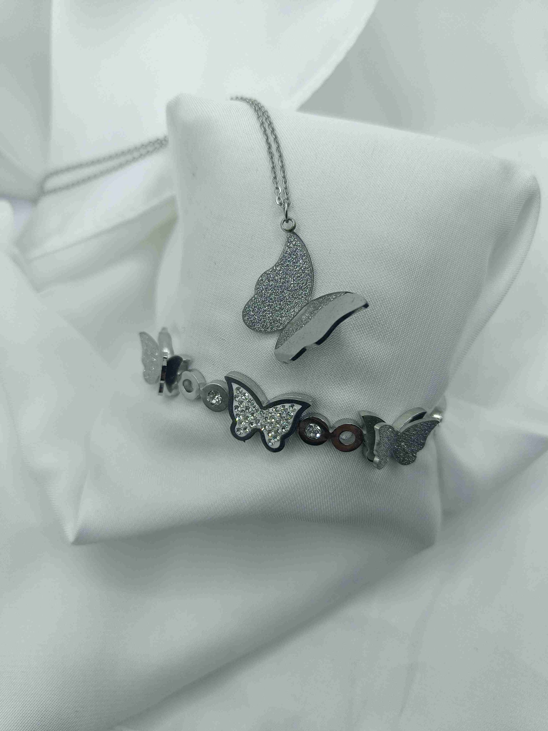 Ένα ατσάλινο βραχιόλι με τρεις πανέμορφες πεταλούδες, σύμβολα ελευθερίας και μεταμόρφωσης. Η κεντρική πεταλούδα, διακοσμημένη με λαμπερά στρας, πλαισιώνεται από δύο ανάγλυφες, sparkly πεταλούδες που χαρίζουν διακριτική λάμψη. Κομψό και αέρινο, το Rhea είναι η τέλεια προσθήκη για ένα ρομαντικό και εκλεπτυσμένο στυλ.