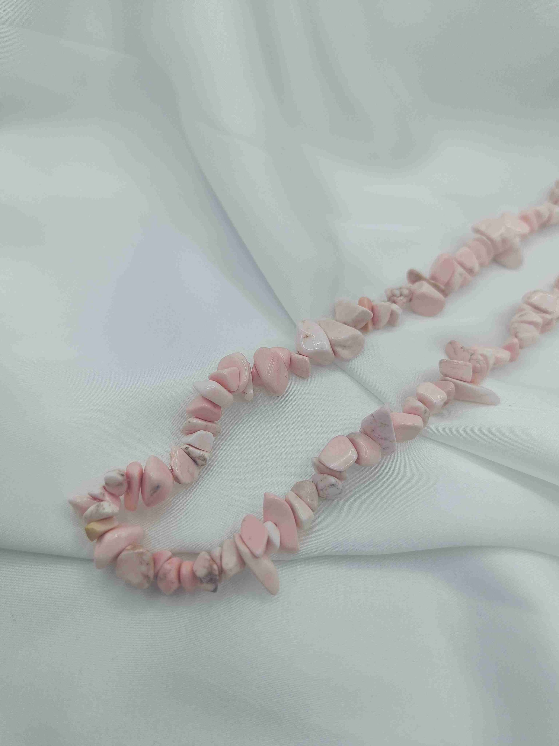 Ρομαντικό και γήινο, το Roselune είναι ένα χειροποίητο κολιέ με ημιπολύτιμες πέτρες ροδονίτη, γνωστό για την απαλή, θεραπευτική του ενέργεια. Οι ροζ τόνοι του συνδυάζονται με ασημί λεπτομέρειες από ανοξείδωτο ατσάλι στο κούμπωμα και την προέκταση, για καθημερινή κομψότητα με ανθεκτικότητα. Ιδανικό για όσες θέλουν να φορούν κάτι που ενισχύει τη θηλυκότητα και την αγάπη με φυσική απλότητα.
