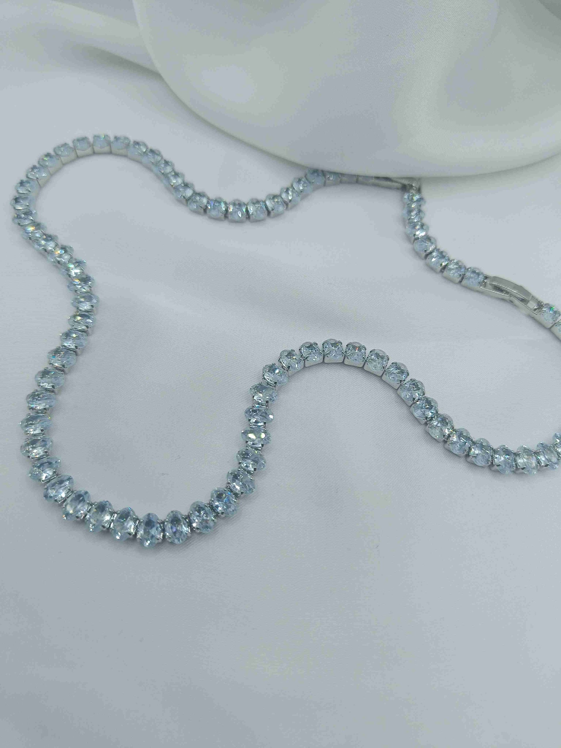 Το Sirell Whisper Silver είναι ένα φίνο και εκλεπτυσμένο κολιέ από ανοξείδωτο ατσάλι, σχεδιασμένο για να ακτινοβολεί διακριτική πολυτέλεια. Μία σειρά από οβάλ λευκά στρας ενώνεται σε μία συνεχόμενη γραμμή φωτός, δημιουργώντας ένα κόσμημα που σαγηνεύει με τη λεπτομέρειά του.
