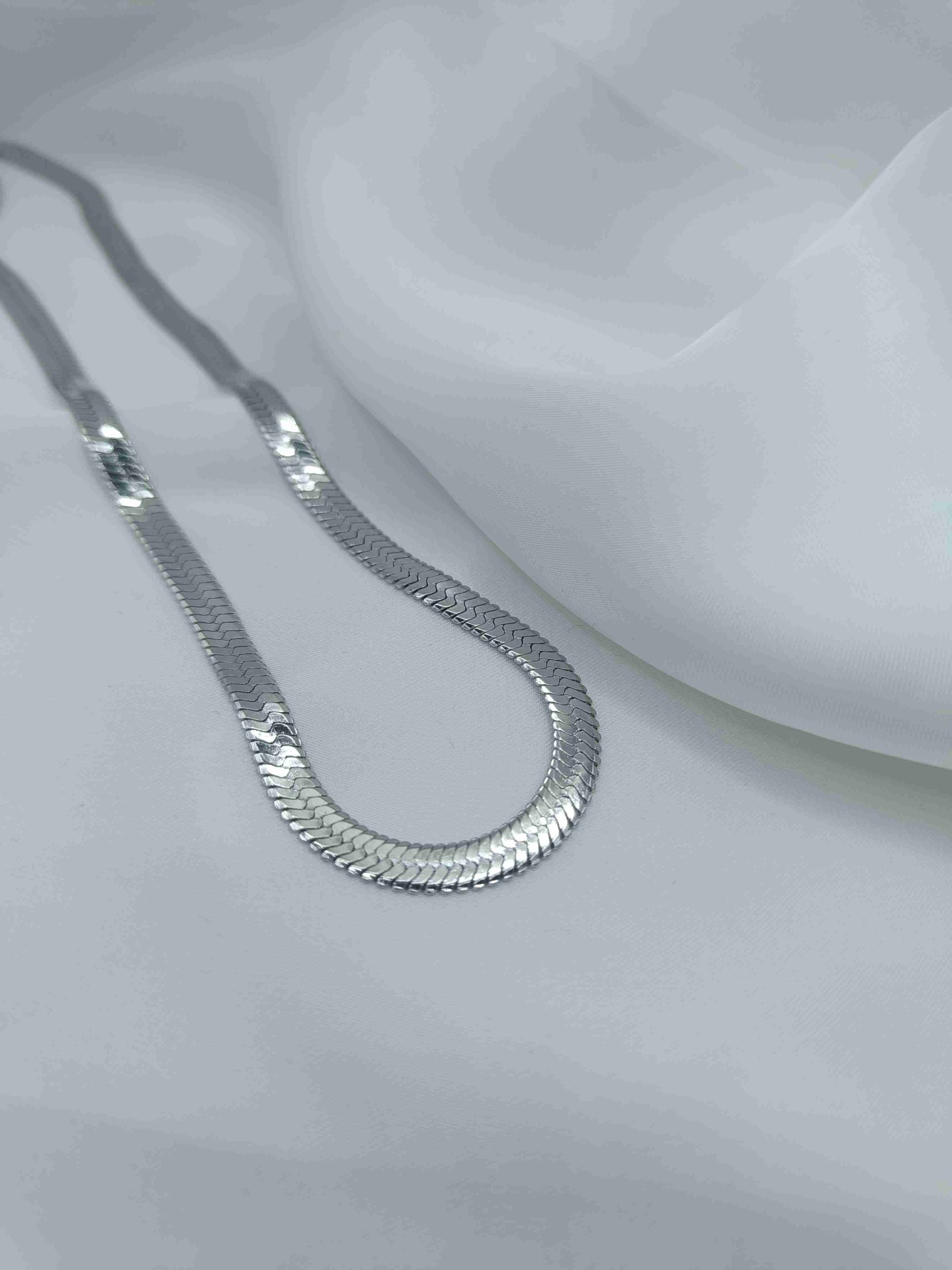 Minimal αλλά εντυπωσιακό, αυτό το κολιέ με πλακέ αλυσίδα από ανοξείδωτο ατσάλι είναι το απόλυτο statement κομμάτι.