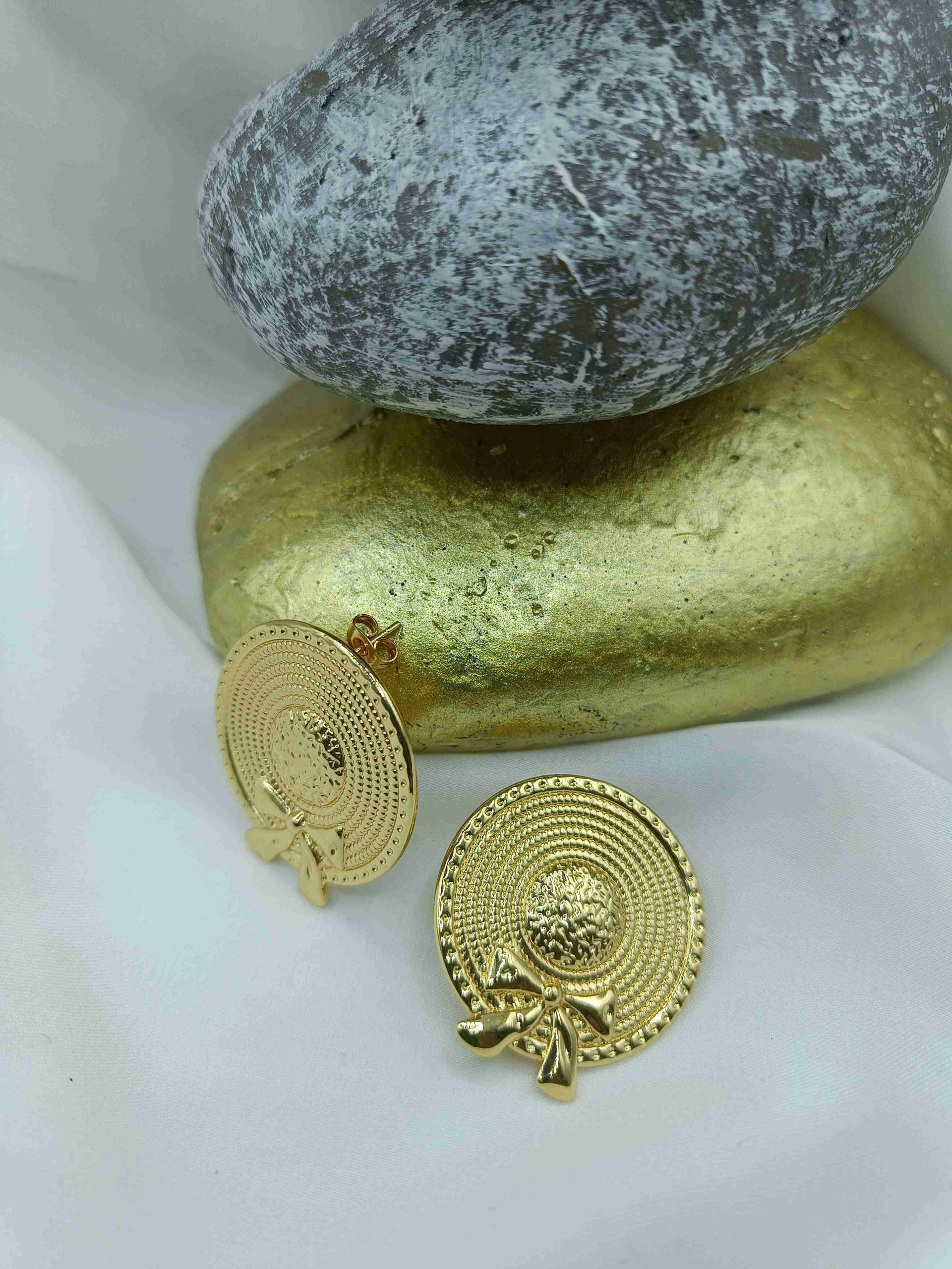 Τα σκουλαρίκια Sole αποπνέουν τη ζεστασιά του ήλιου και την ανεμελιά του καλοκαιριού. Με μοναδικό σχέδιο που θυμίζει ψάθινο καπέλο, είναι ιδανικά για λαμπερές εμφανίσεις από το πρωί μέχρι το βράδυ. Φτιαγμένα από ανθεκτικό ατσάλι σε χρυσό χρώμα, συνδυάζουν στυλ και διαχρονικότητα.