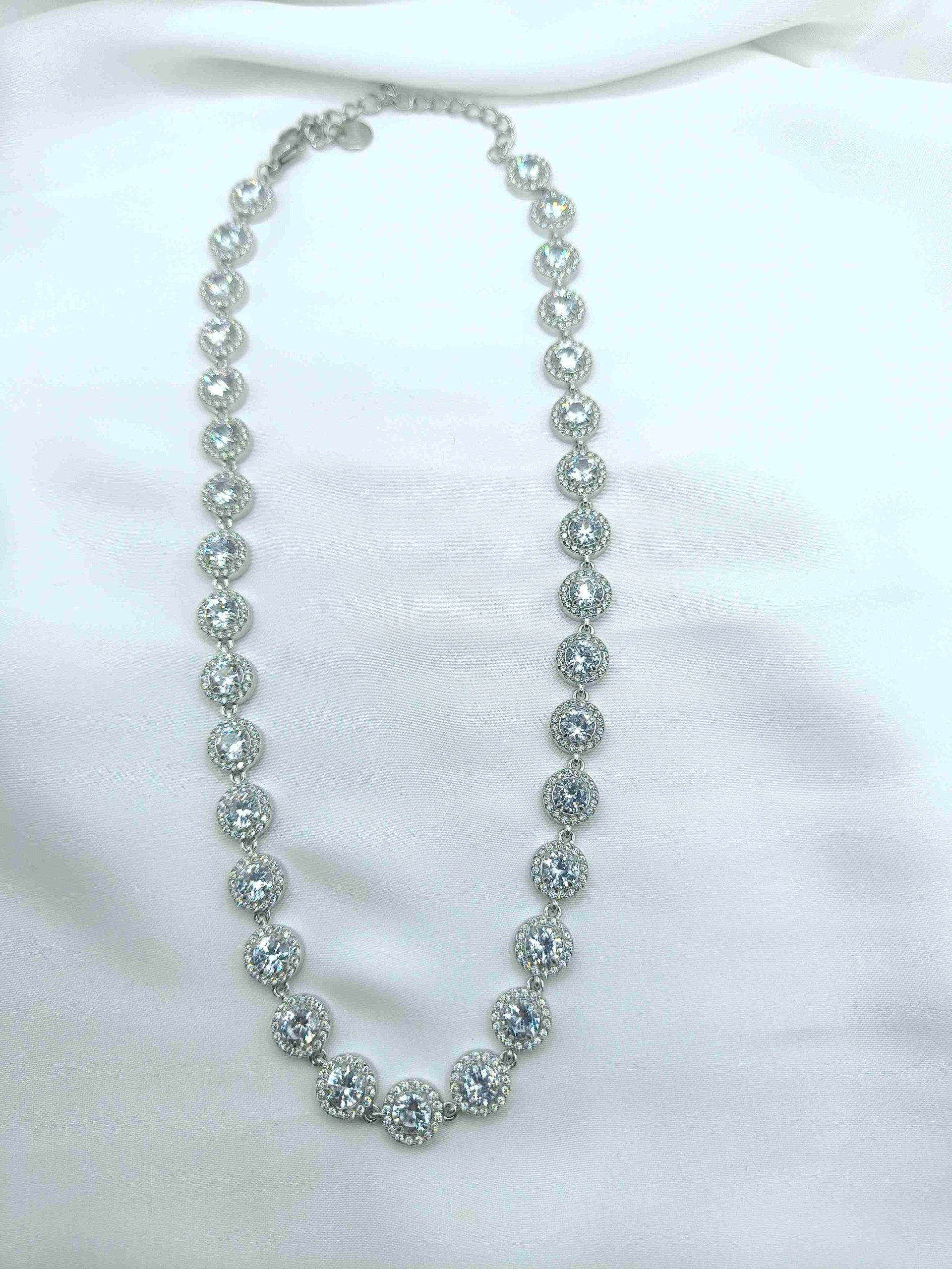 Το Sparkle Aura είναι μια λαμπερή ριβιέρα από ανοξείδωτο ατσάλι, σχεδιασμένη για να αιχμαλωτίζει το φως. Κάθε κυκλικό στοιχείο του φιλοξενεί στο κέντρο ένα μεγάλο λευκό ζιργκόν, περιτριγυρισμένο από μικρότερα που αναδεικνύουν τη λάμψη του με εντυπωσιακό τρόπο. Ένα κόσμημα που αποπνέει κομψότητα και φως, ιδανικό για να αναβαθμίσει κάθε σου εμφάνιση, από τις πιο εκλεπτυσμένες στιγμές μέχρι τις πιο λαμπερές βραδινές εξόδους.