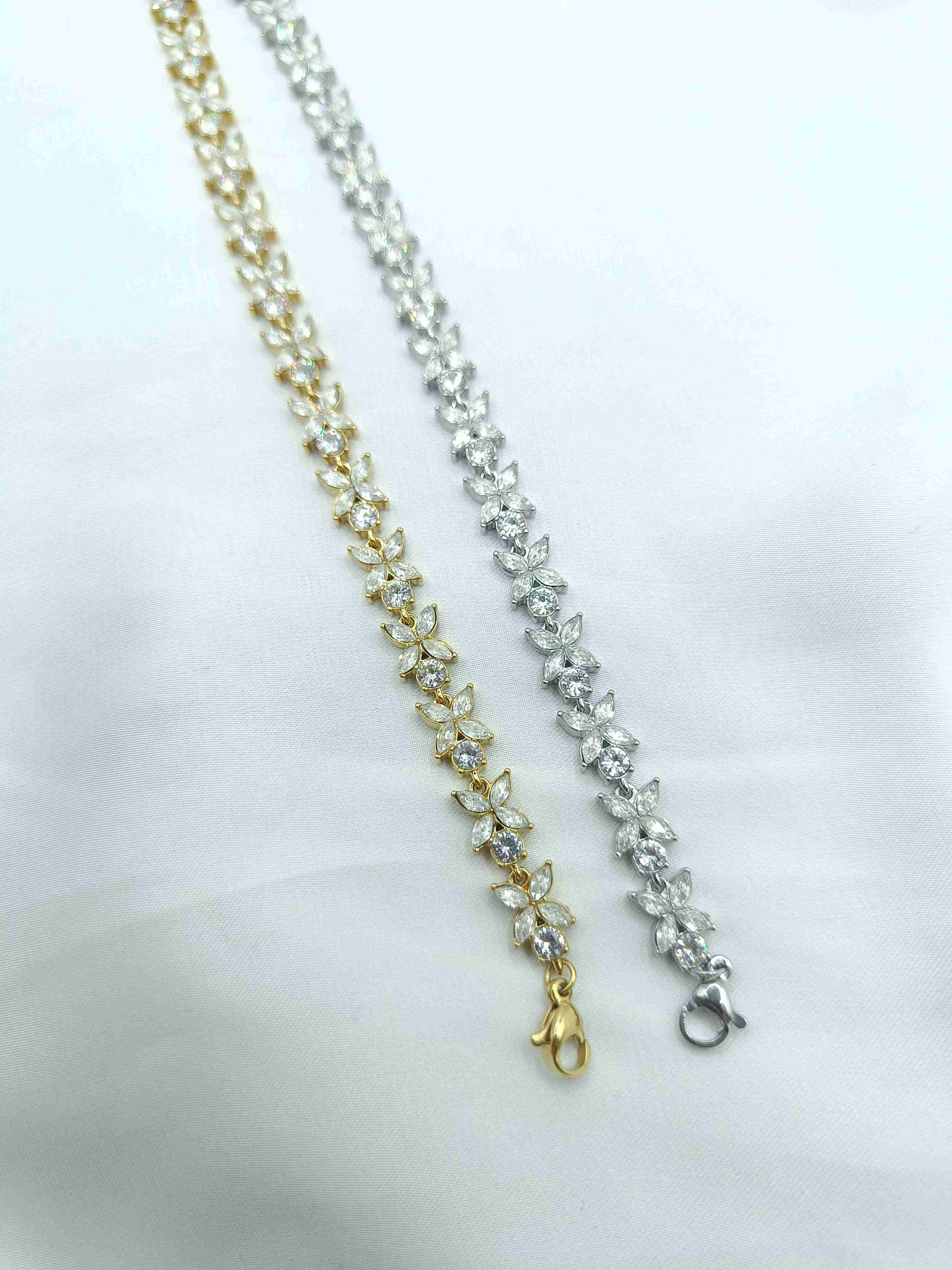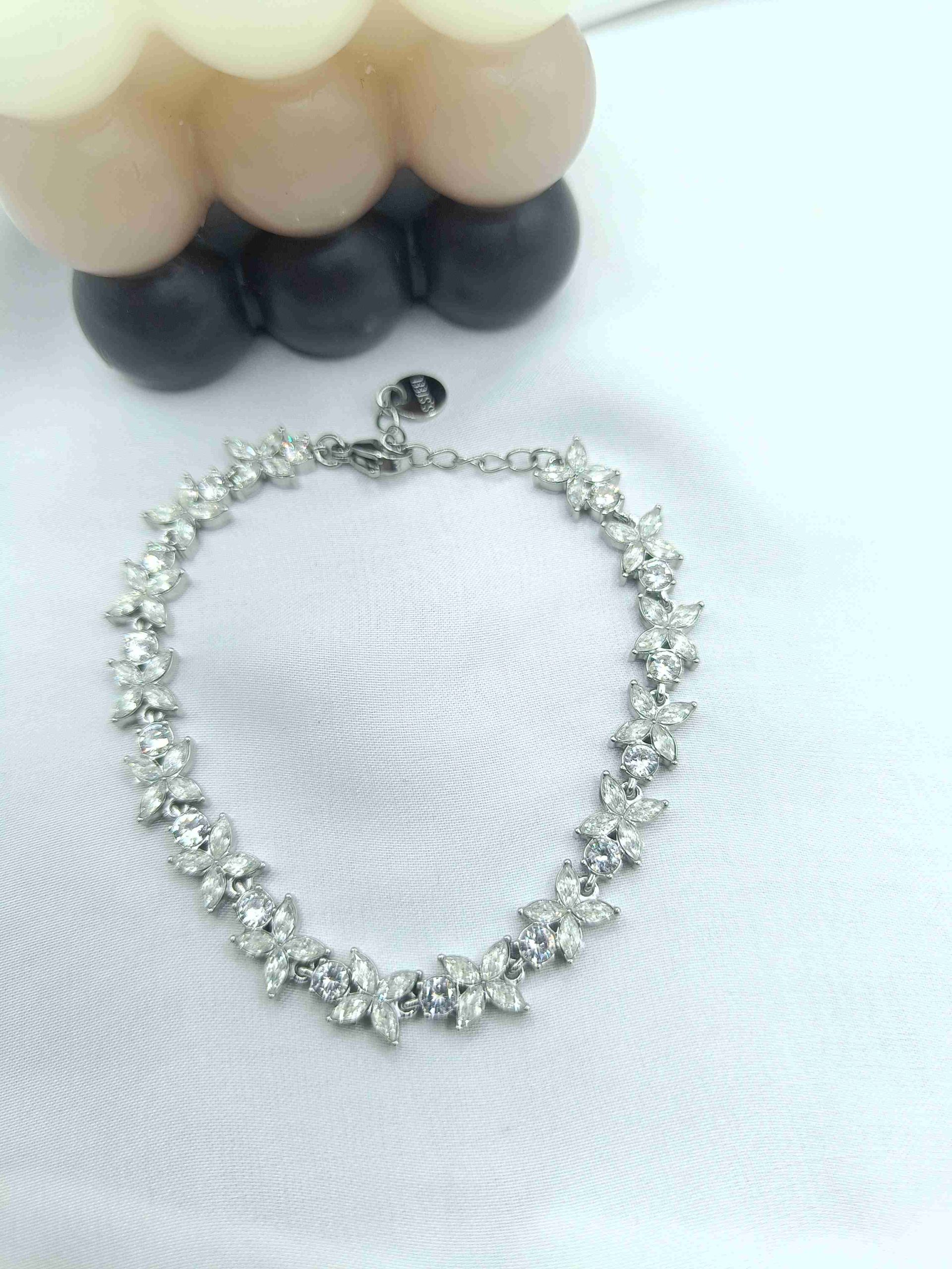 Το Sparkle Petal είναι ένα διαχρονικά κομψό βραχιόλι-ριβιέρα, διακοσμημένο με λαμπερά ζιργκόν που σχηματίζουν λεπτεπίλεπτα πέταλα. Κάθε “λουλουδάκι” αντανακλά το φως μοναδικά, δημιουργώντας μια αίσθηση κίνησης και φυσικής αρμονίας.