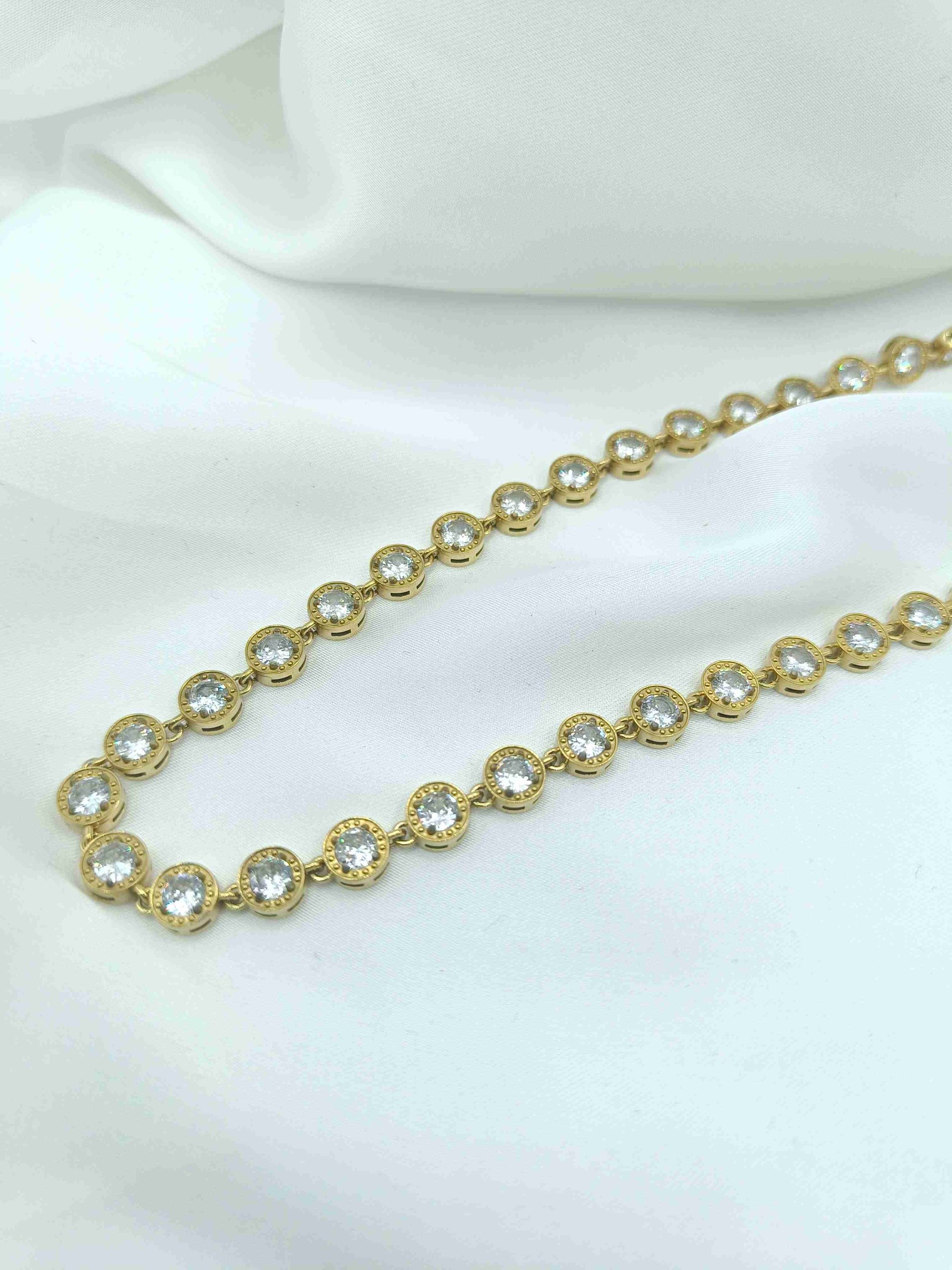 Κλασικό και πολυτελές, το Sparkle White Gold συνδυάζει τη διαχρονική ομορφιά του χρυσού με τη λάμψη των διαφανών ζιργκόν. Ένα κολιέ που δεν θα περάσει απαρατήρητο.