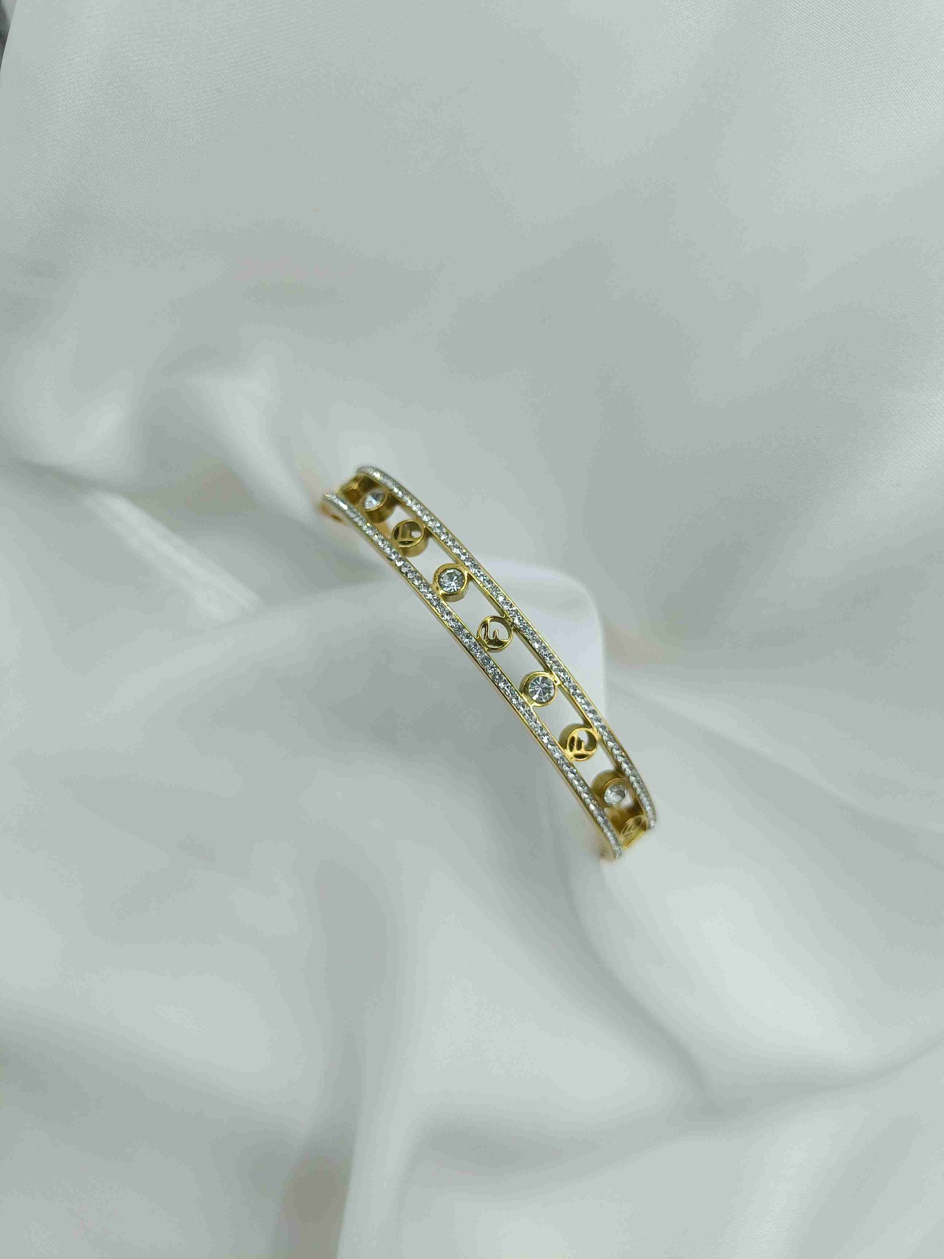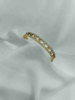 Ένα εκλεπτυσμένο βραχιόλι-χειροπέδα από ανοξείδωτο ατσάλι σε χρυσό χρώμα, με δύο λεπτές γραμμές που συμβολίζουν την ισορροπία και τη διακριτική δύναμη. Ανάμεσά τους, λαμπερά λευκά ζιργκόν και κομψά κυκλικά μοτίβα σχηματίζουν ένα παιχνίδι φωτός και αρμονίας. Το Valia είναι μία κομψή και διαχρονική επιλογή για τις στιγμές που θέλεις να ξεχωρίσεις με διακριτική λάμψη.