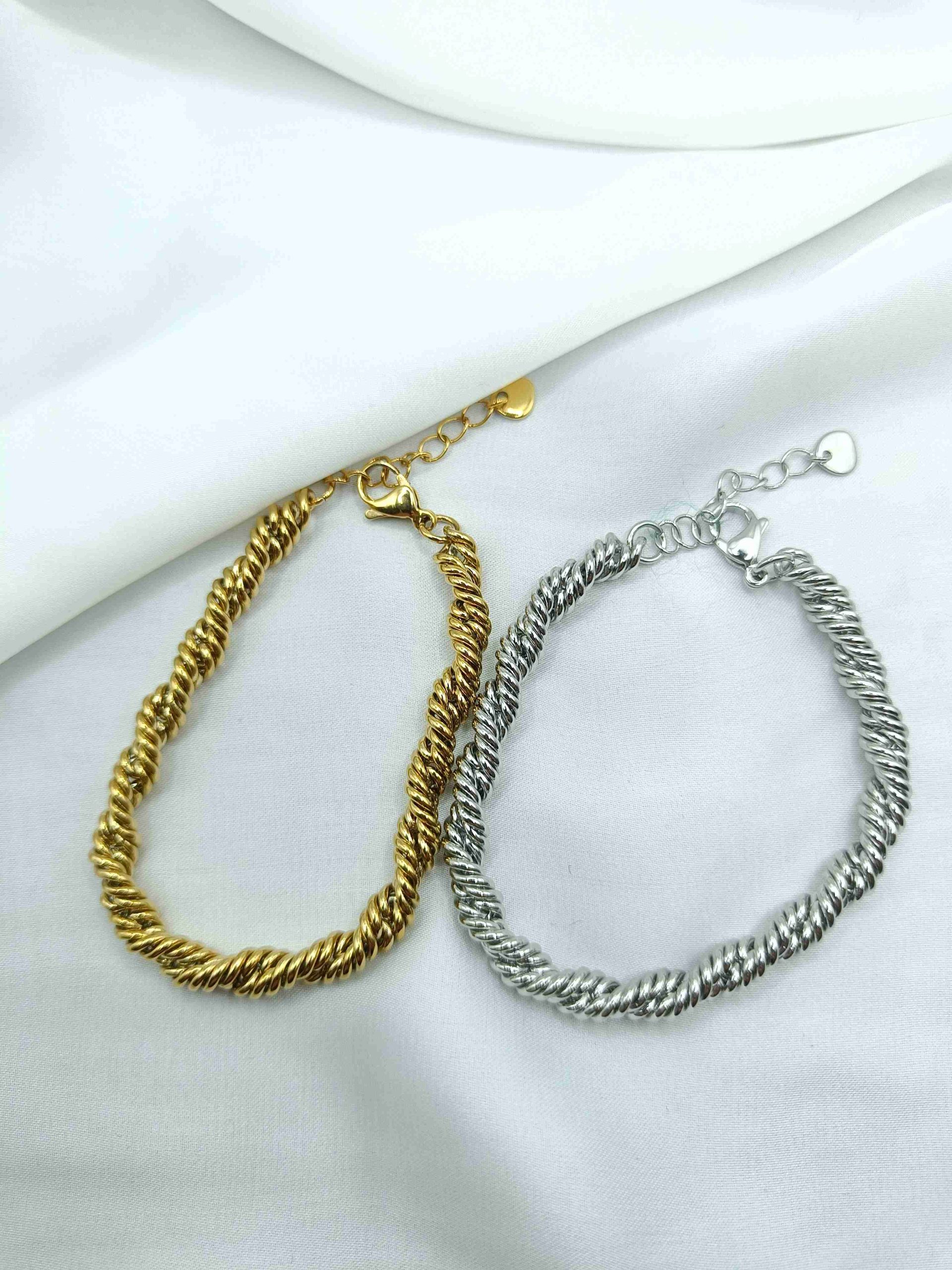 Το Volina Bracelet αποπνέει διακριτική δύναμη και εκλεπτυσμένη κίνηση. Η στριφτή αλυσίδα αγκαλιάζει τον καρπό με φυσική ρευστότητα, δημιουργώντας ένα statement κομμάτι που συνδυάζει κομψότητα και μοντέρνα αισθητική.