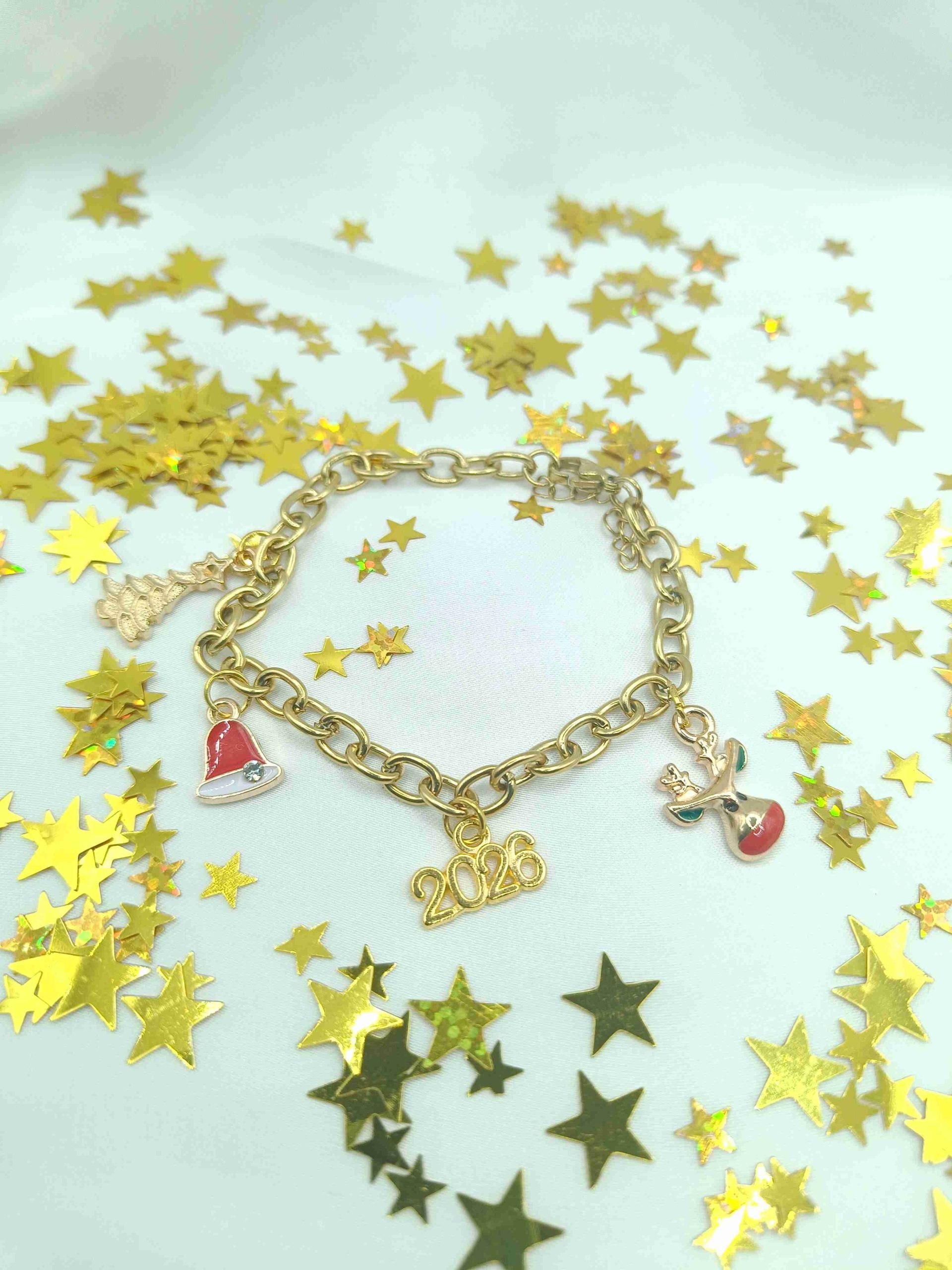 Γιορτινό φυλαχτό με λαμπερά charms, ιδανικό για κάθε εμφάνιση. Το βραχιόλι Μαγεία φέρνει παιχνιδιάρικη διάθεση και θετική ενέργεια για τις γιορτές. Ευχόμαστε για τη νέα χρονιά: να σου φέρει μαγεία, χαρά και απίθανες στιγμές.