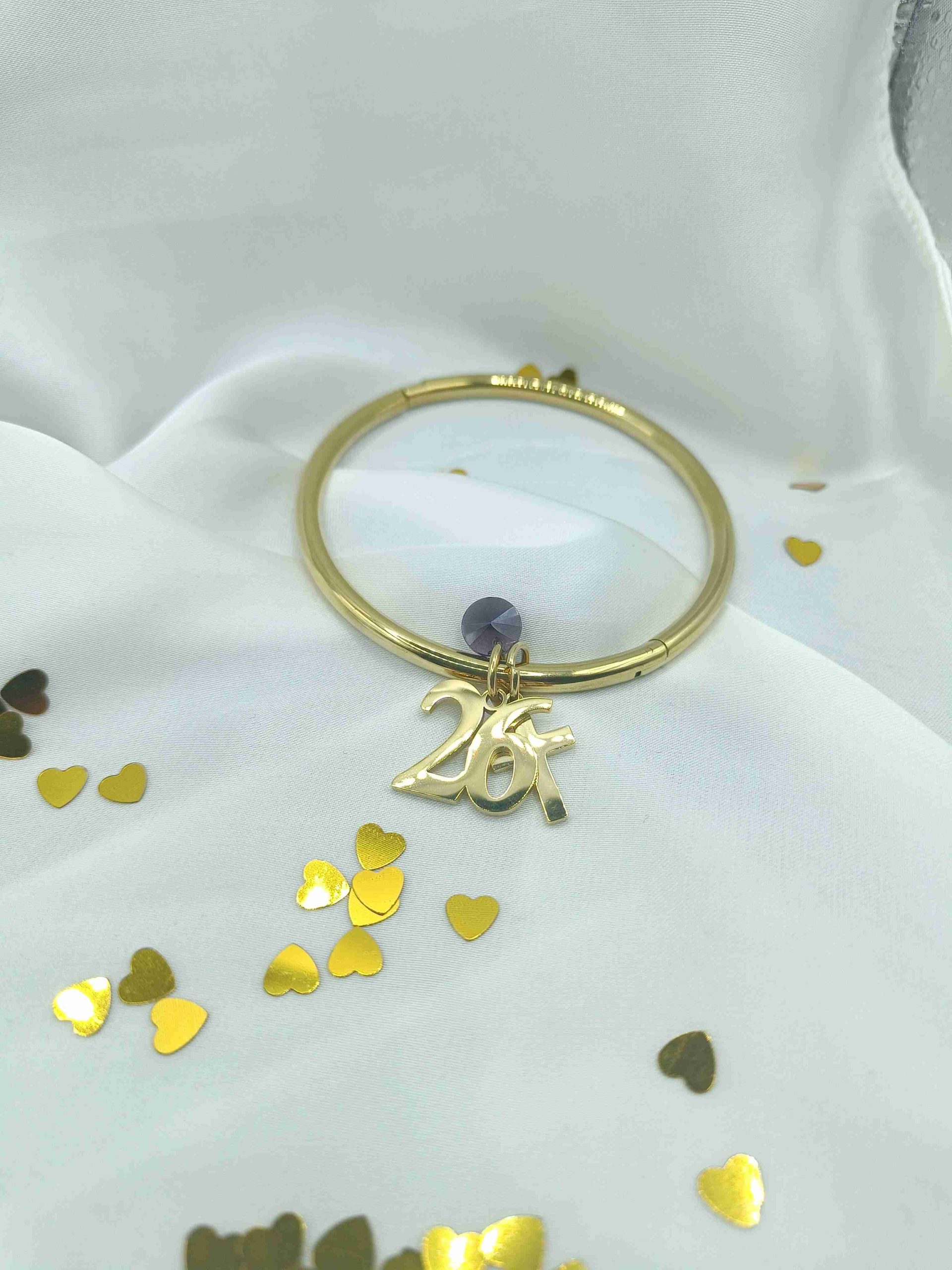 Βραχιόλι χειροπέδα από ανοξείδωτο ατσάλι, με το 26, σταυρό και μωβ κρύσταλλο.