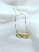Το Zerelle είναι ένα σύγχρονο κολιέ από ανοξείδωτο ατσάλι σε χρυσό χρώμα, με minimal γεωμετρικό σχεδιασμό και έναν αέρα διακριτικής κομψότητας. Οι τρεις λαμπερές πέτρες ζιργκόν στο κέντρο κινούνται ελεύθερα μέσα στο περίγραμμά τους, δημιουργώντας ένα μοναδικό παιχνίδι κίνησης και φωτός που μαγνητίζει το βλέμμα.