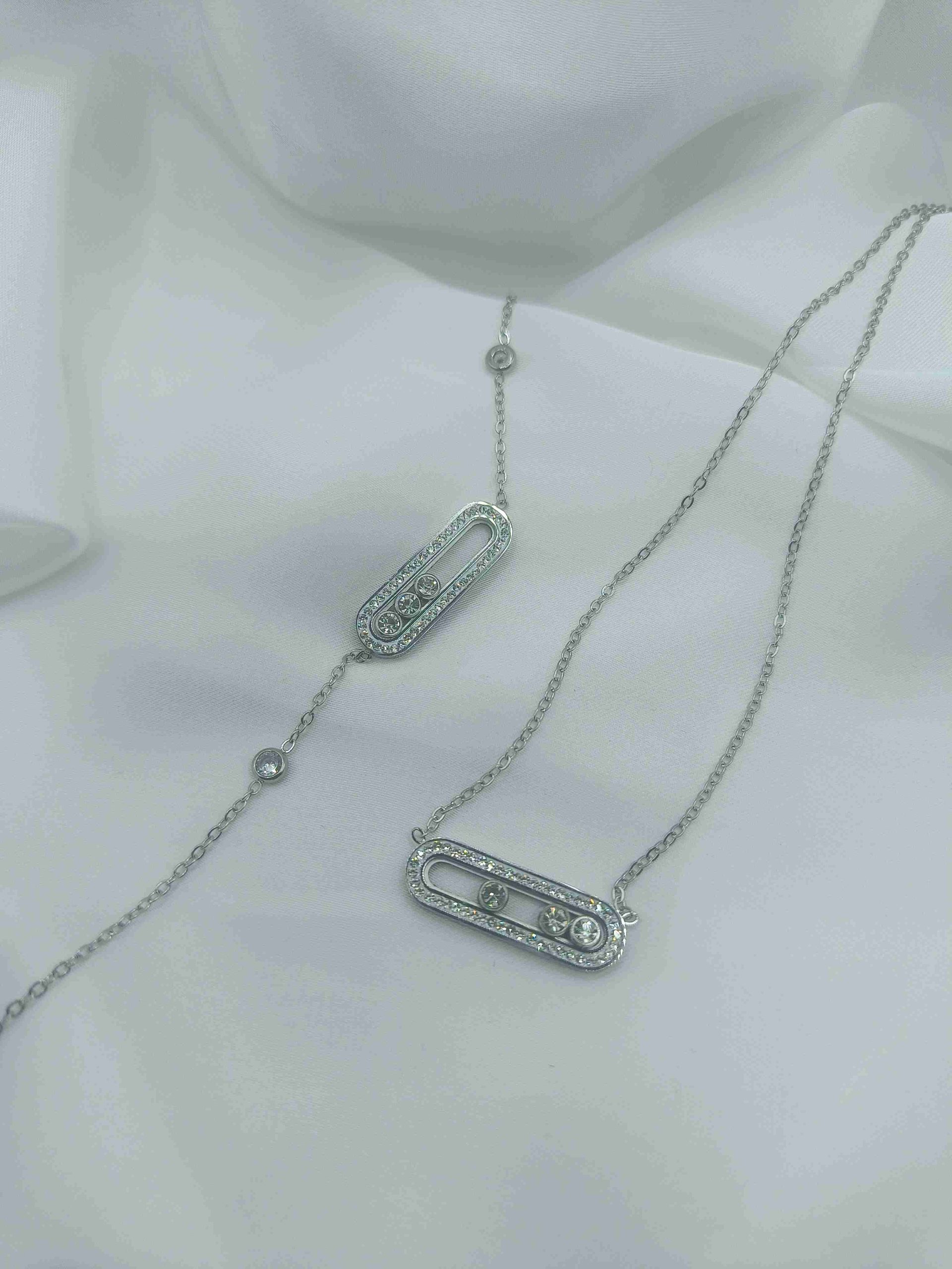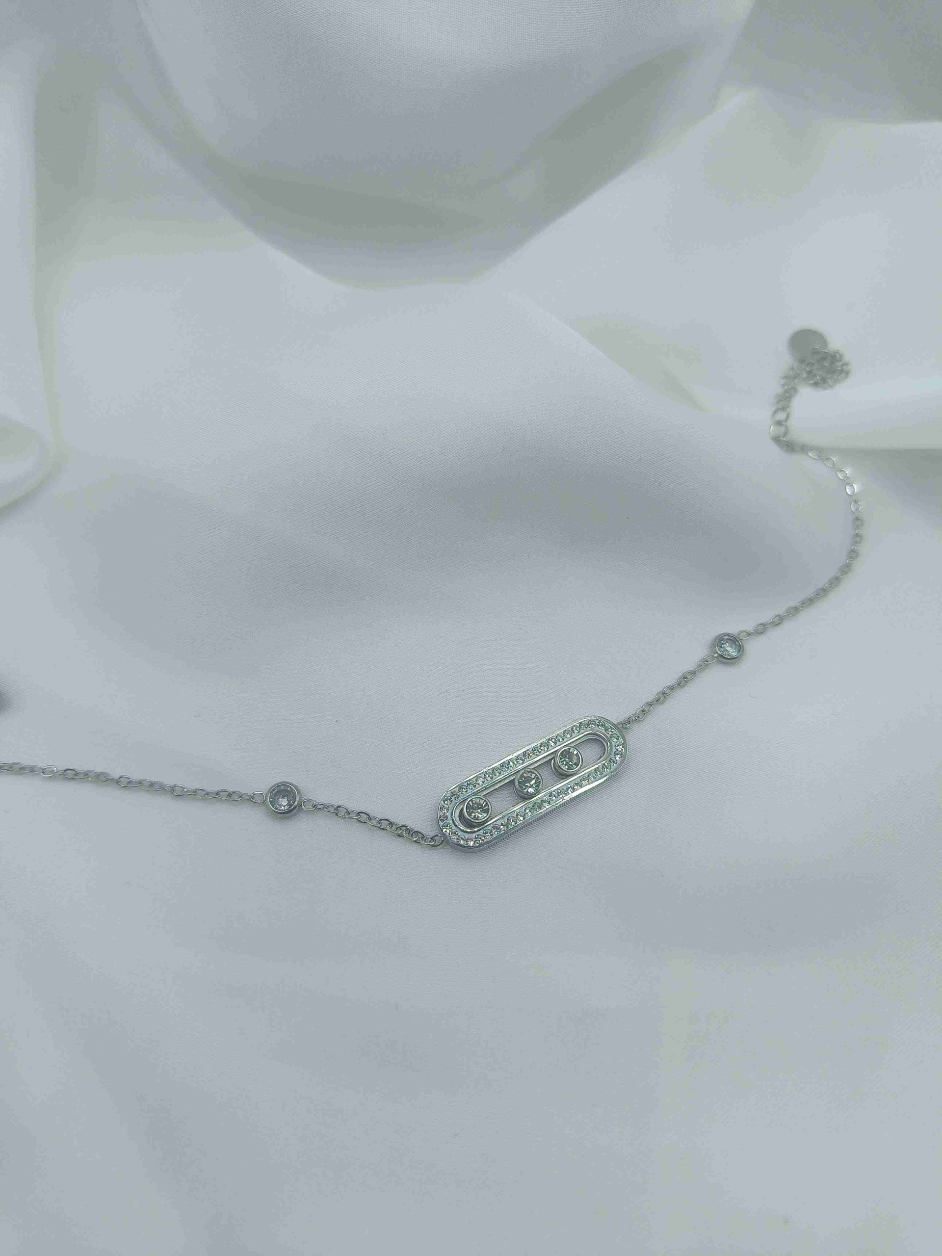Το Zerra είναι ένα κομψό, μοντέρνο βραχιόλι από ανοξείδωτο ατσάλι σε ασημί χρώμα, με γεωμετρικό σχεδιασμό και διακριτική λάμψη. Οι τρεις κεντρικές πέτρες ζιργκόν κινούνται ελεύθερα μέσα στο πλαίσιο, δημιουργώντας ένα παιχνίδι φωτός και κίνησης που τραβά το βλέμμα. Είναι ιδανικό για καθημερινή κομψότητα με μία δόση από κάτι “ζωντανό”.
