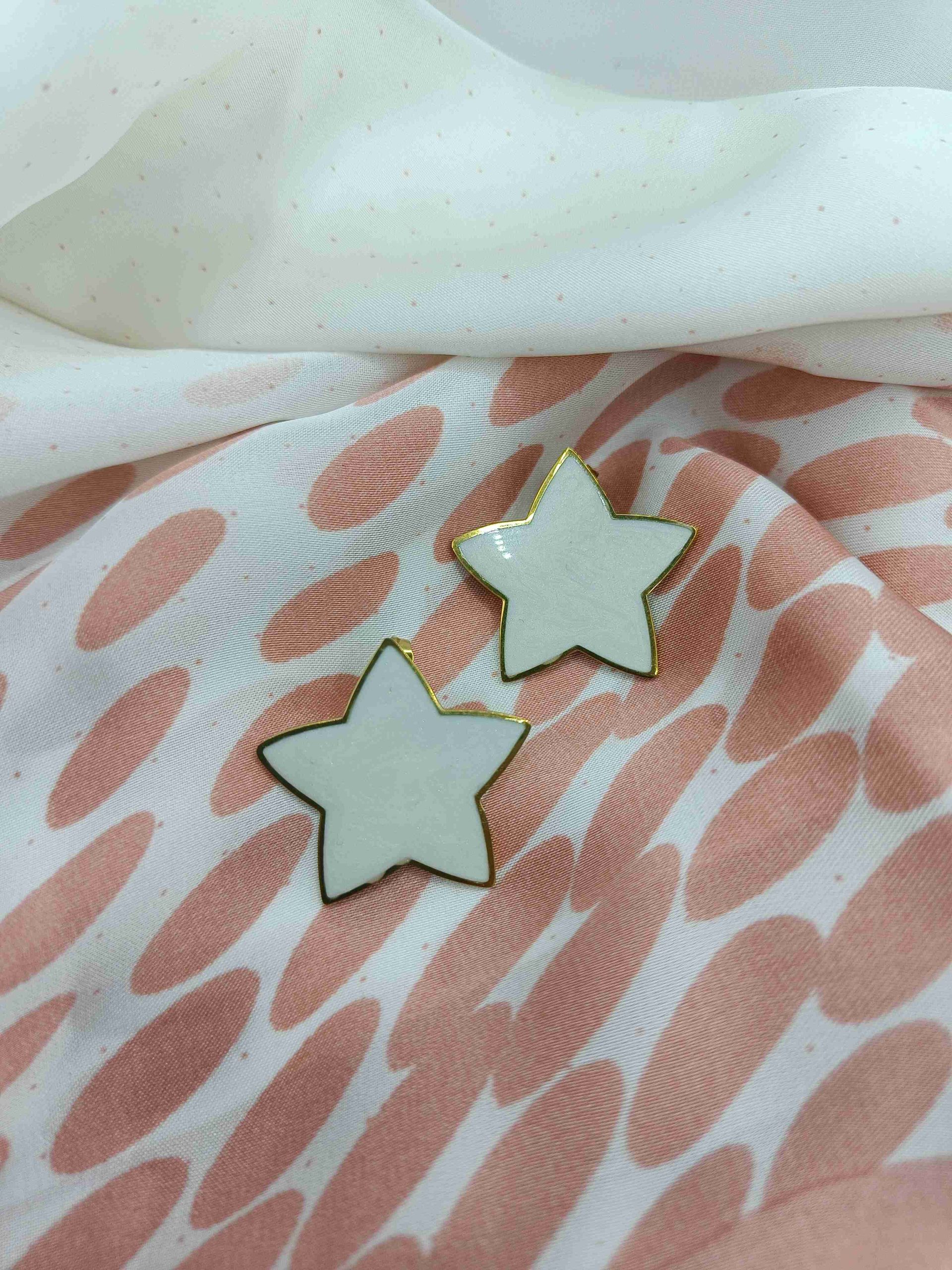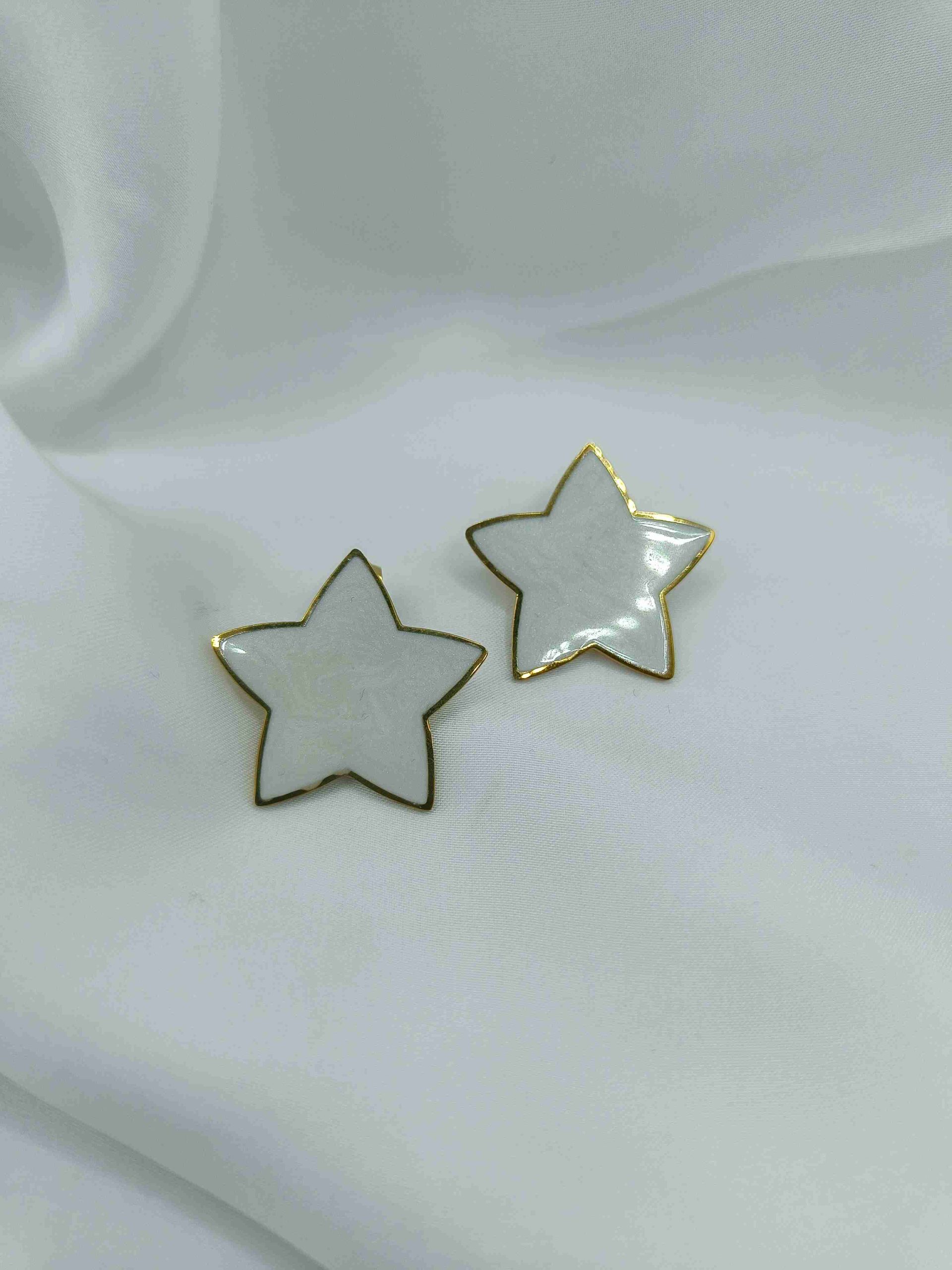 Τα Ziva είναι κομψά σκουλαρίκια σε σχήμα αστεριού, με λαμπερό χρυσό περίγραμμα και λευκό κέντρο που αντανακλά το φως με διακριτική κομψότητα. Καρφωτά και ανάλαφρα, προσθέτουν μια αίσθηση καθαρής λάμψης σε κάθε σου εμφάνιση.